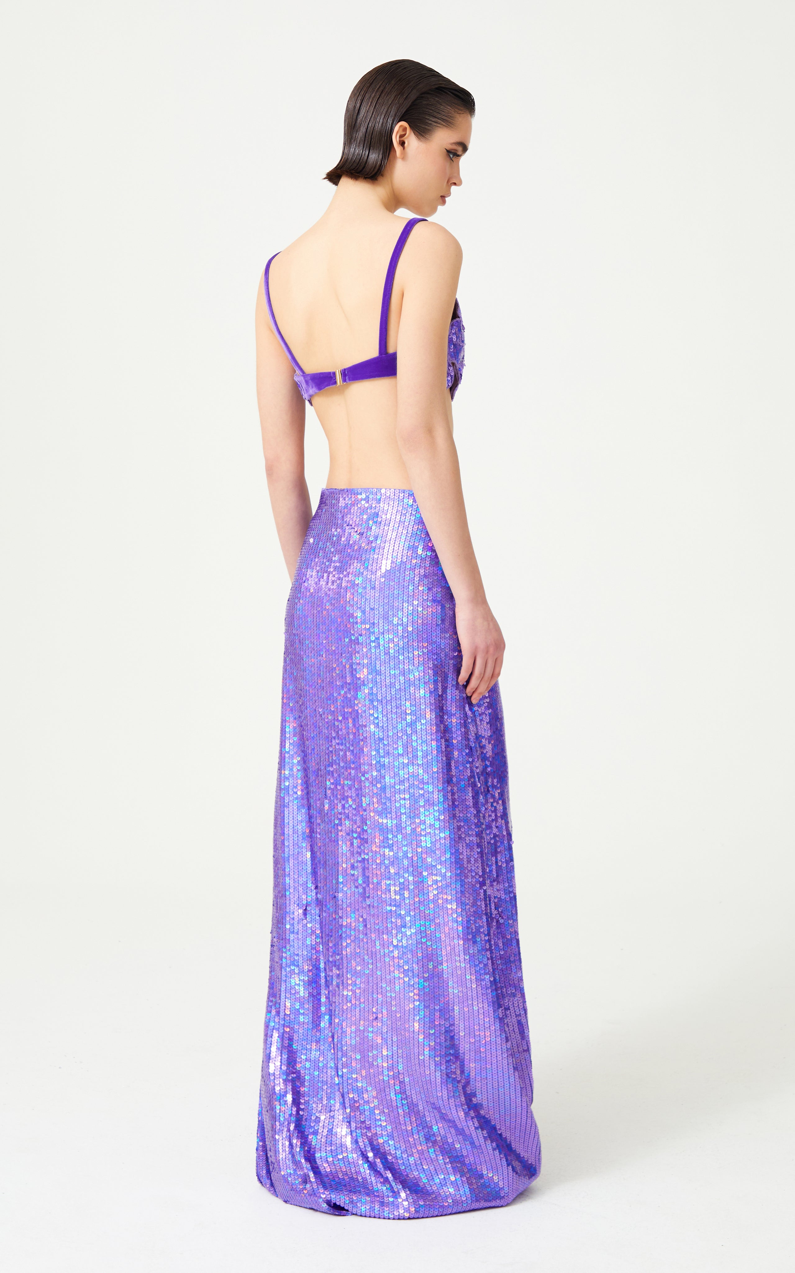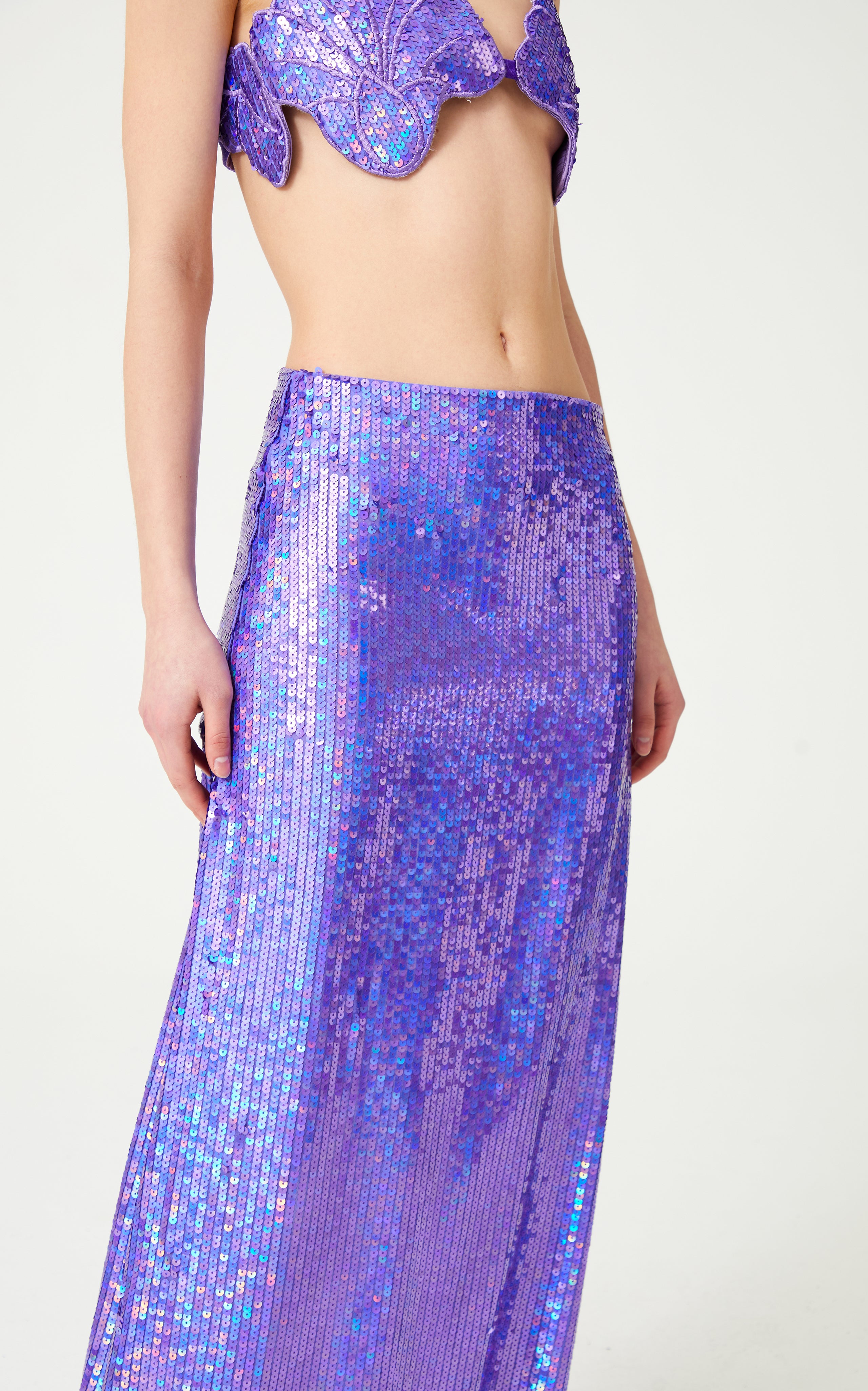 From FW 2024 Aviva Gracious Collection. This Lilac Sequin Maxi Skirt Design is Pre Order.
