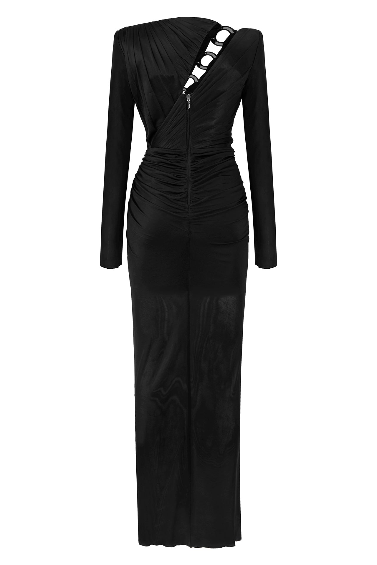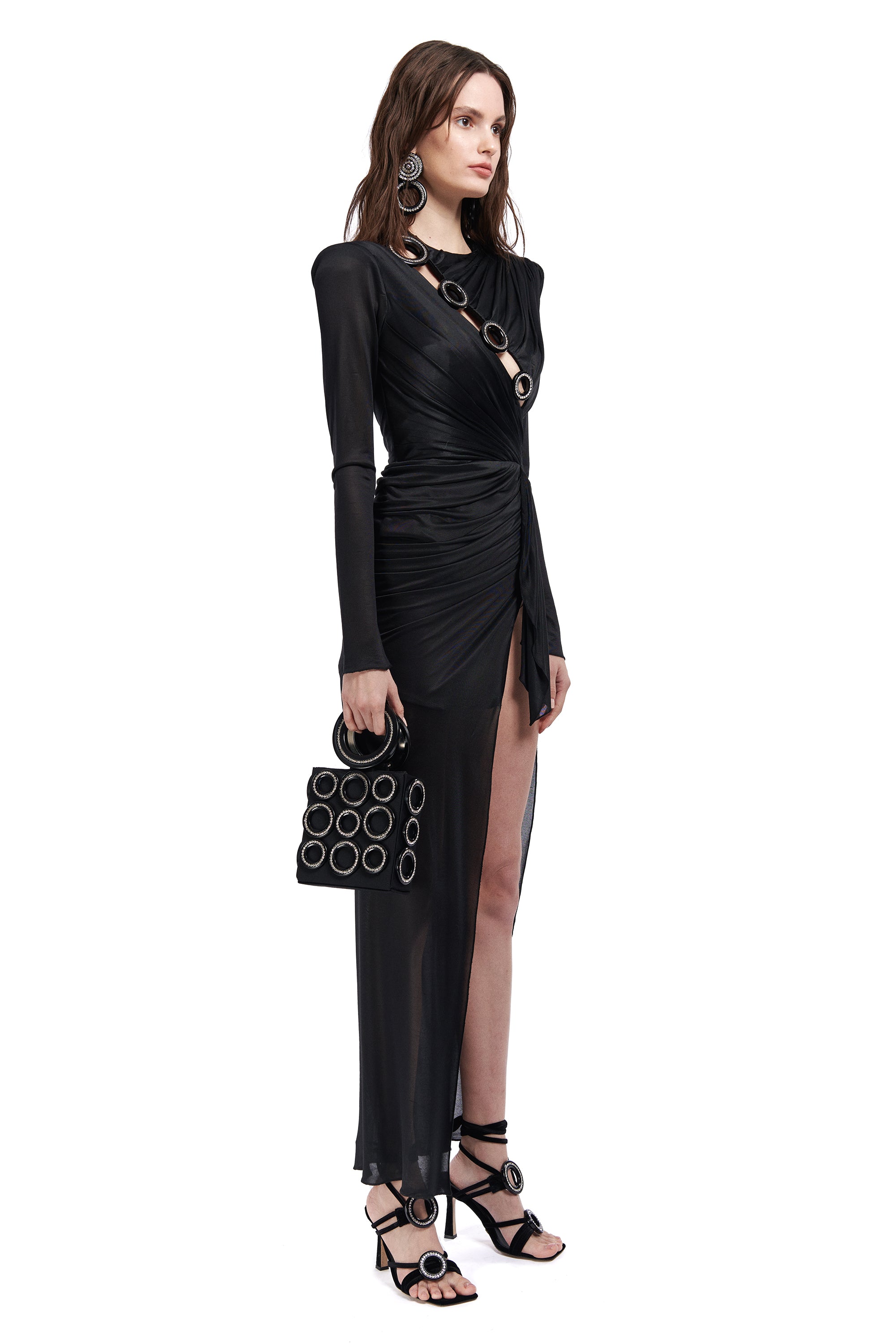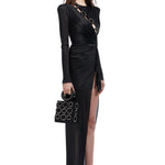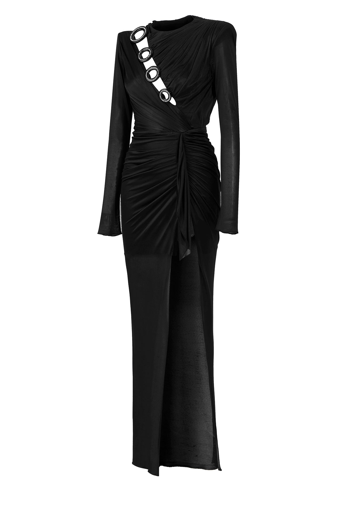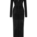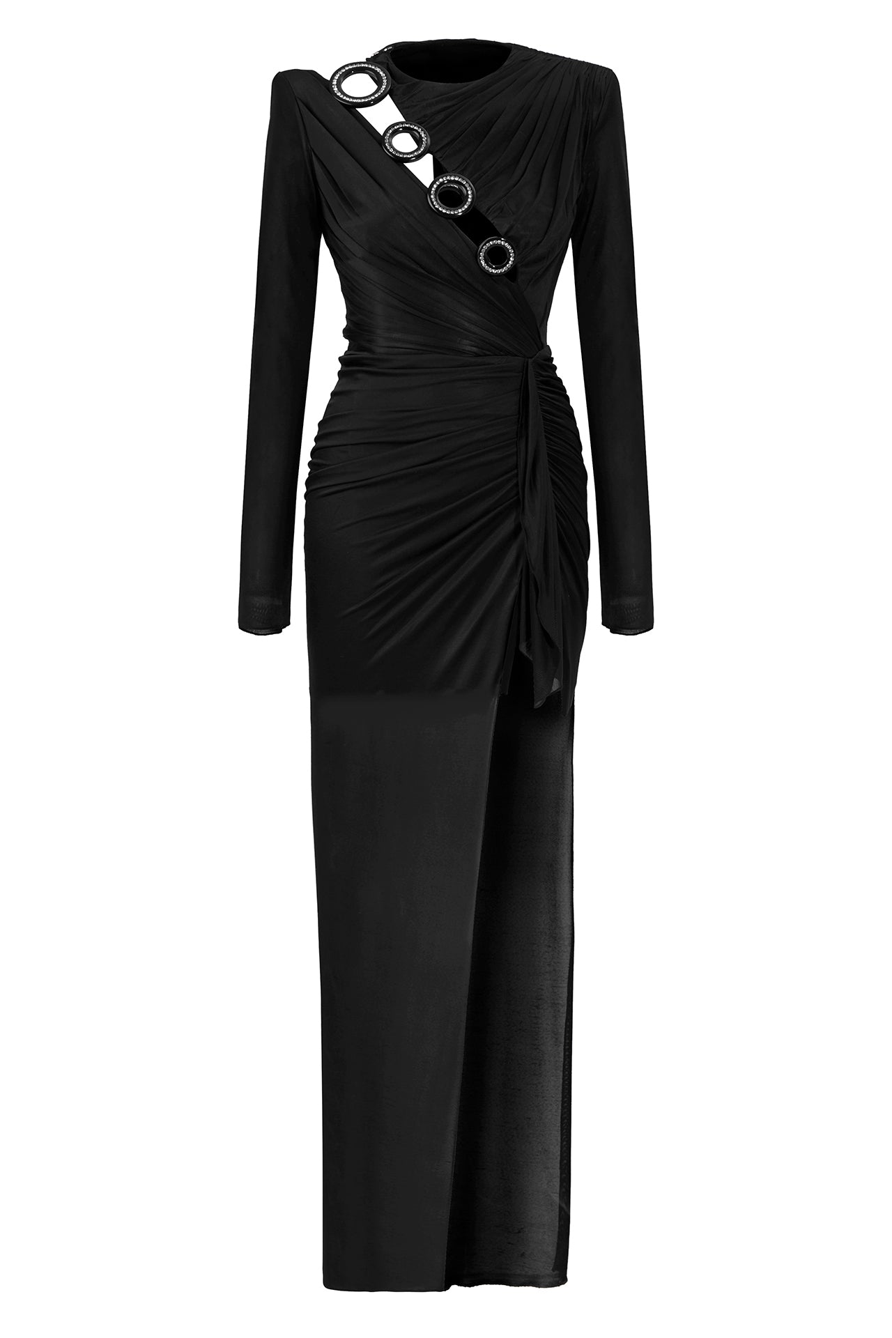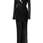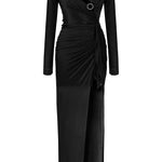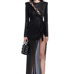 Long Sleeved Crystal Buttoned Midi Dress With High Slit