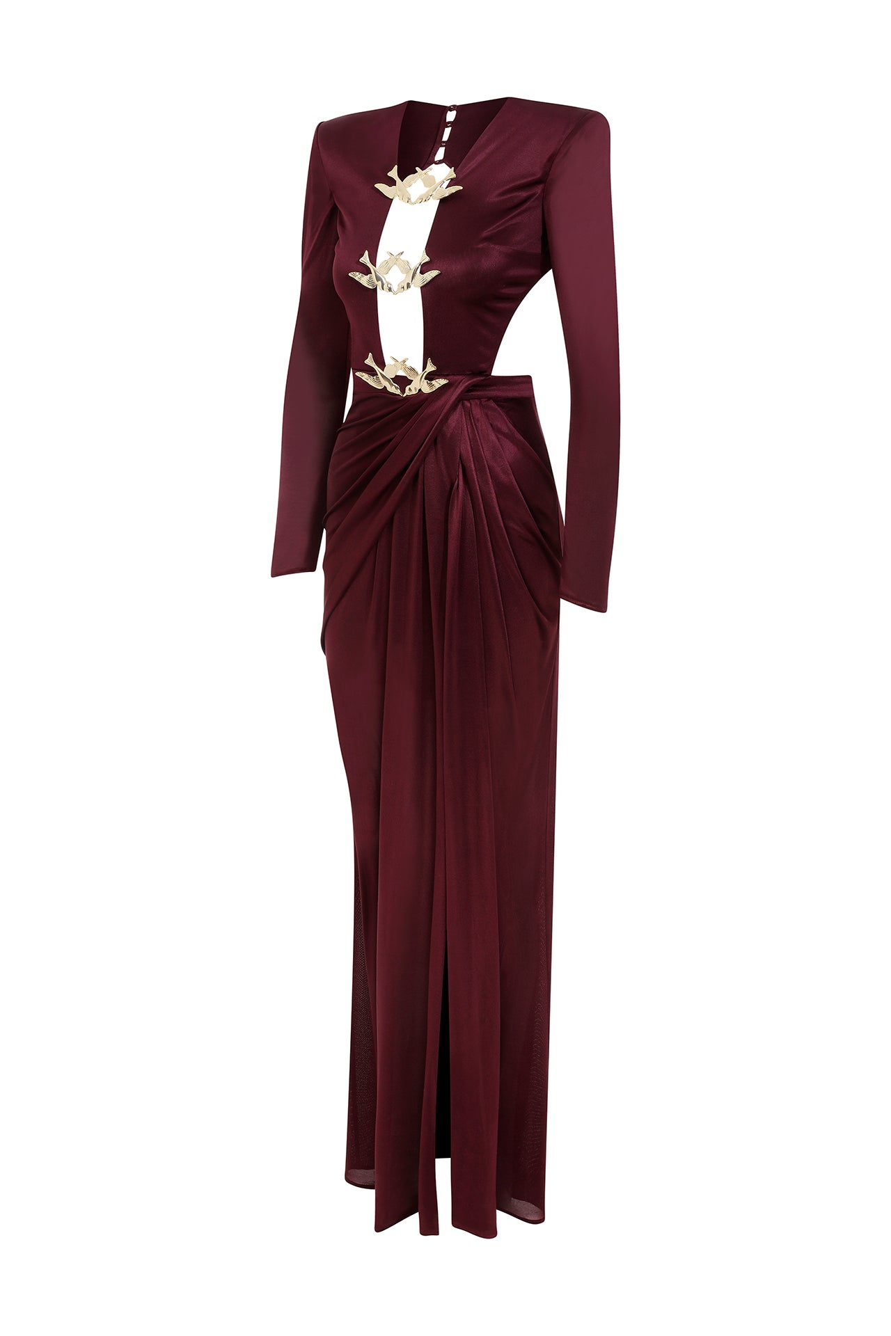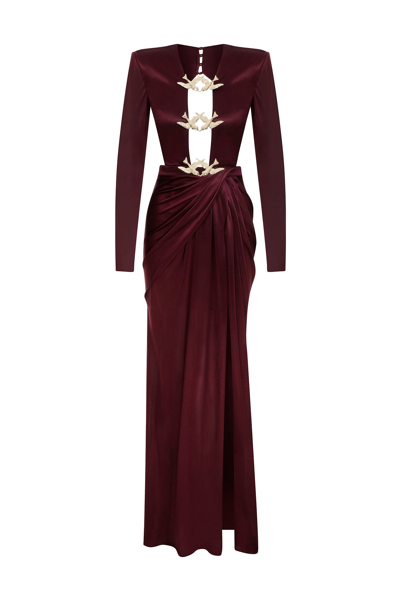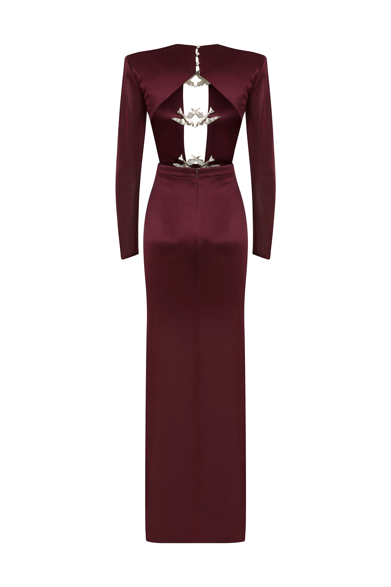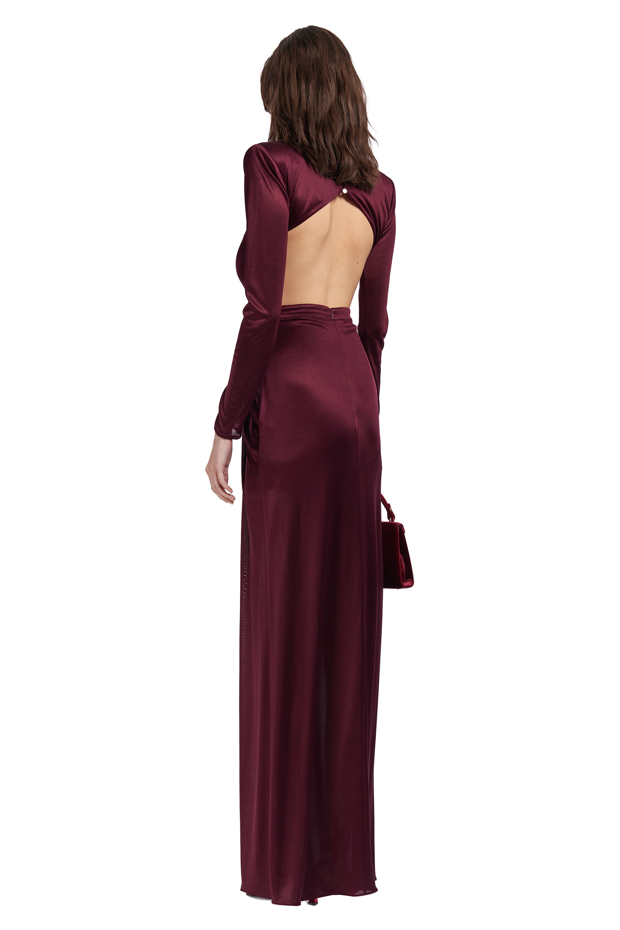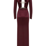 Long Sleeved Transparent Neck Maxi Dress