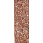This patterned long skirt has velvet fabric details on the waist and slit details.