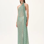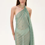 Mint Crystal Printed Chiffon See Through Dress With Attached Necklace
