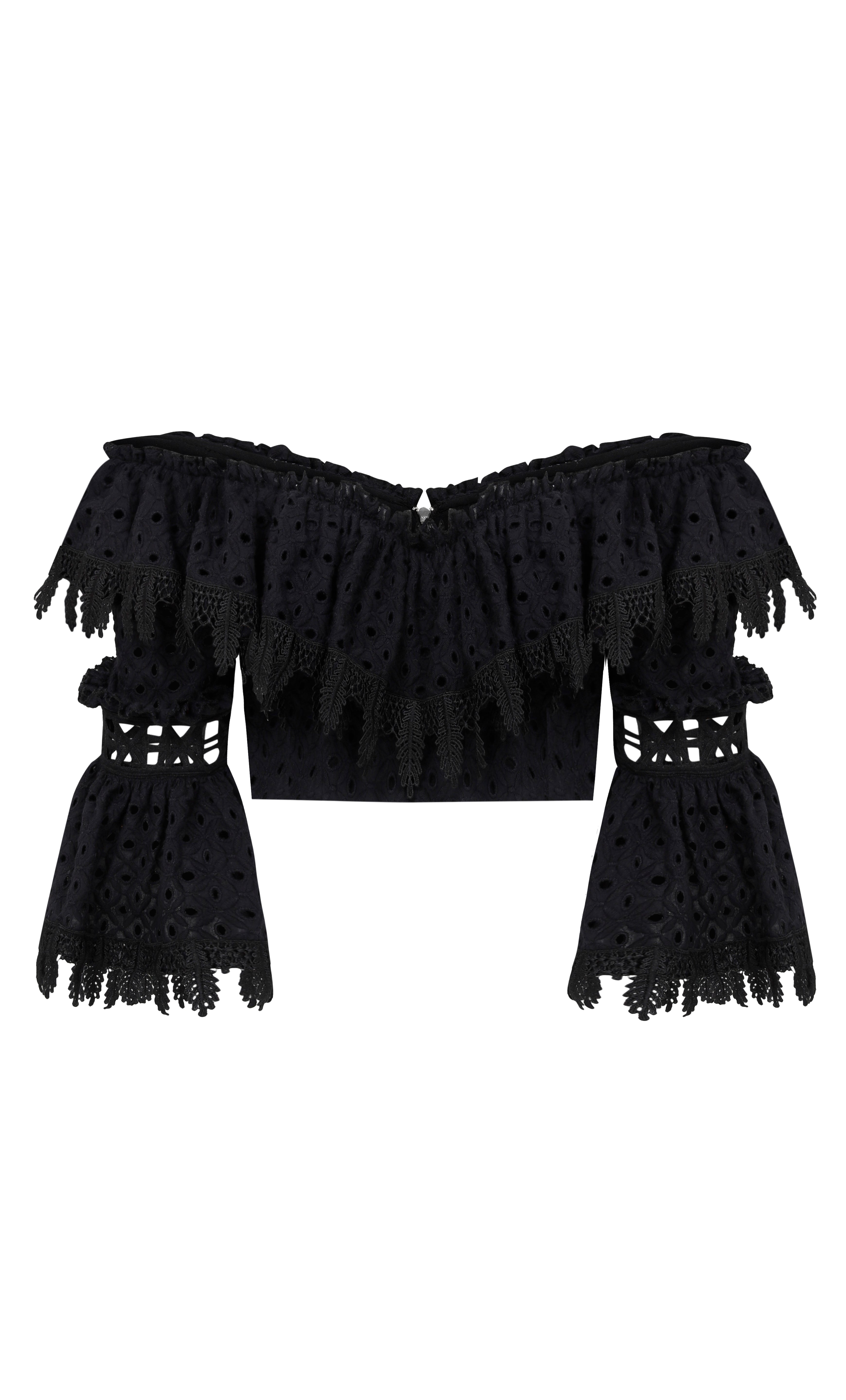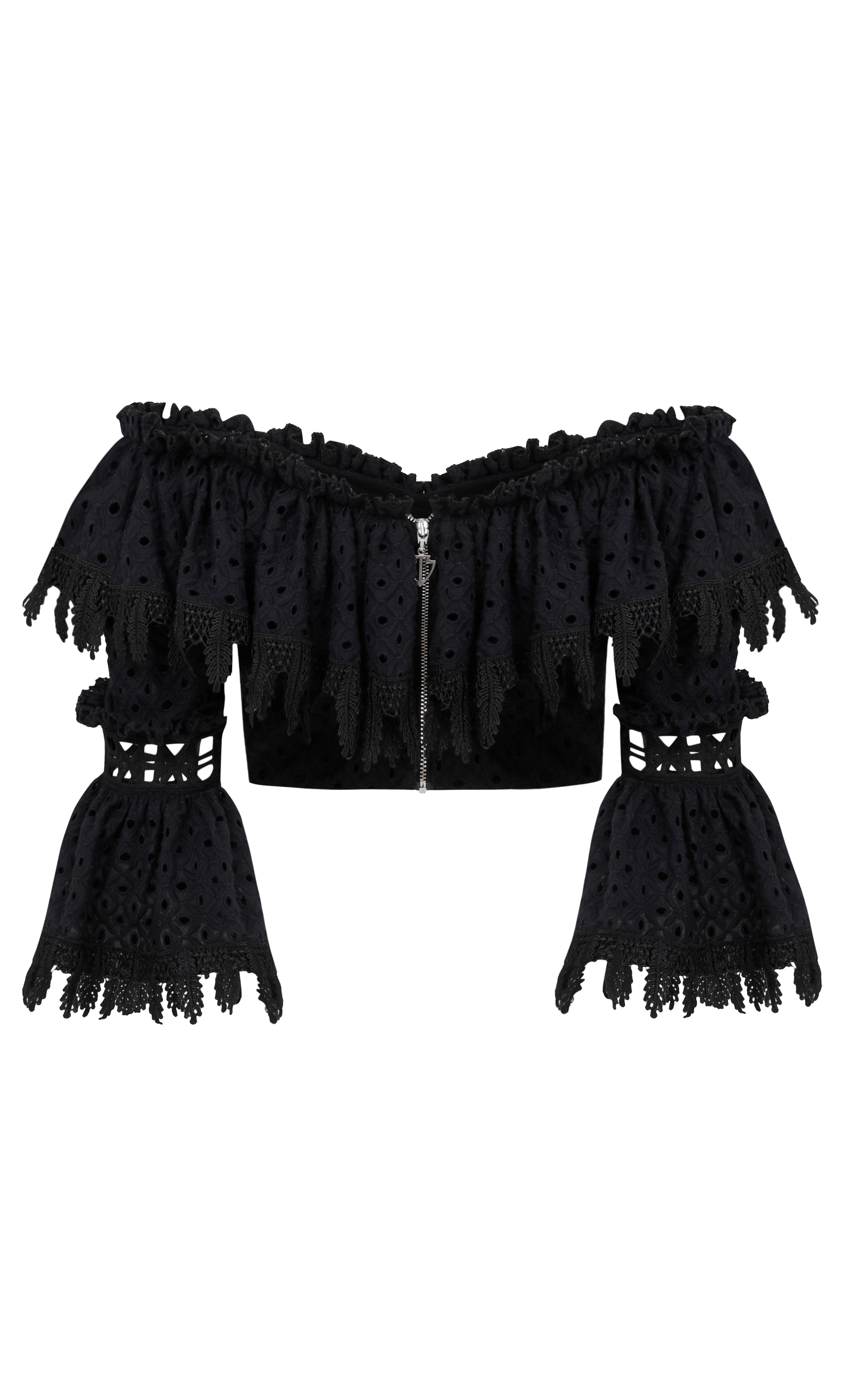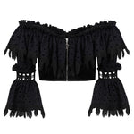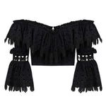 Off the Shoulder Ruffled Top with Leaf Fringes