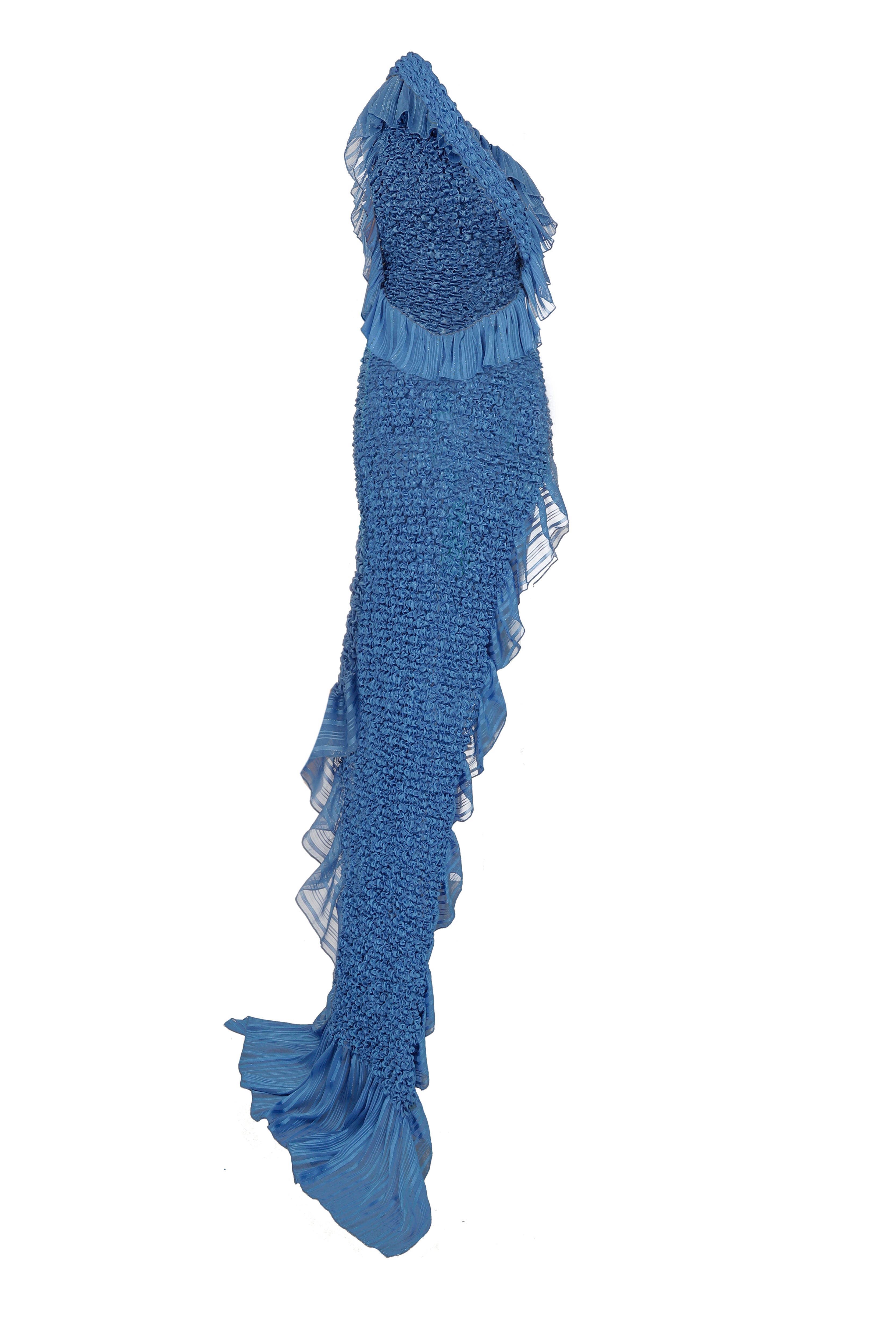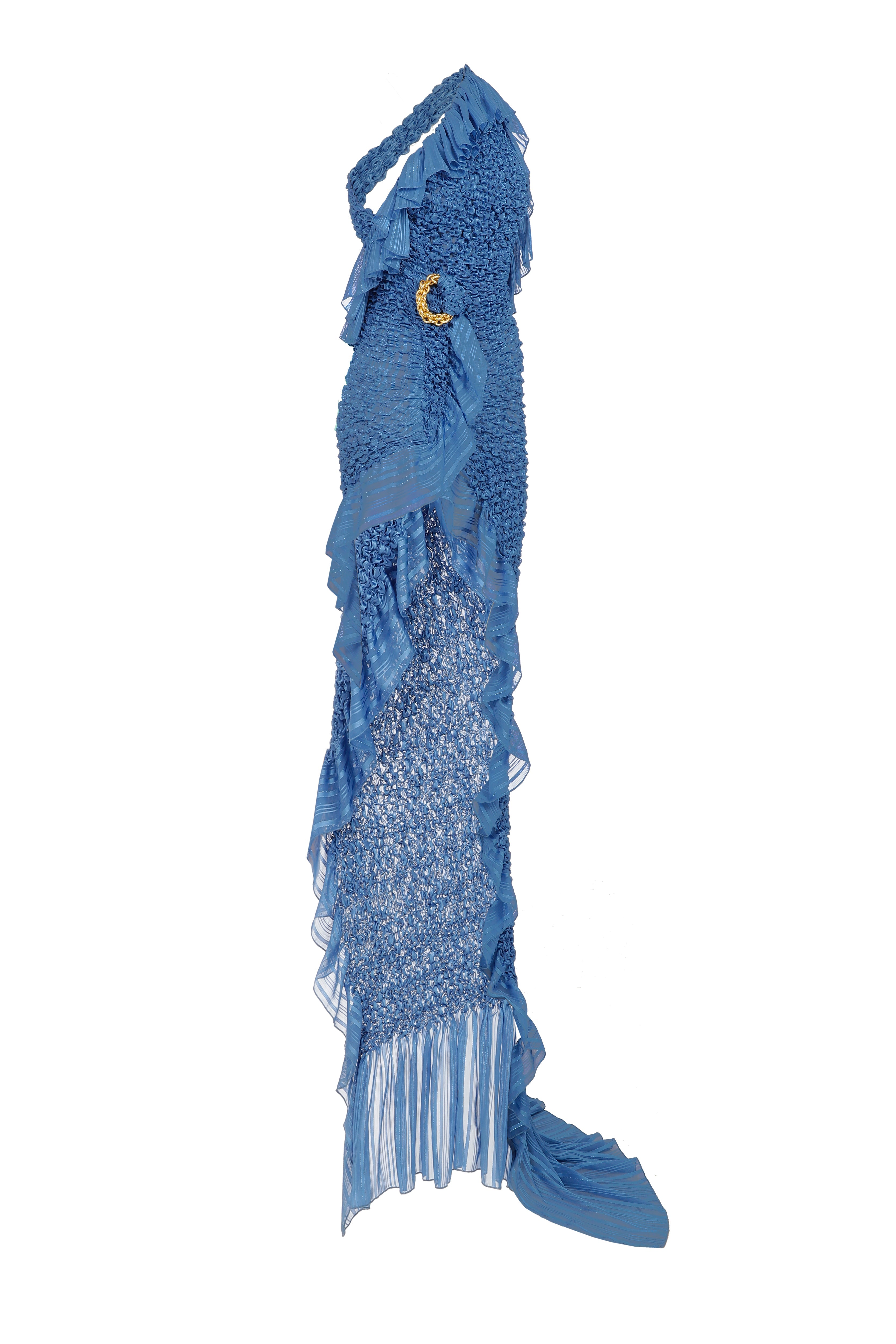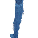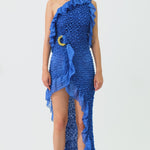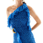 One Shoulder Crochet Chiffon Ruffle Maxi Dress