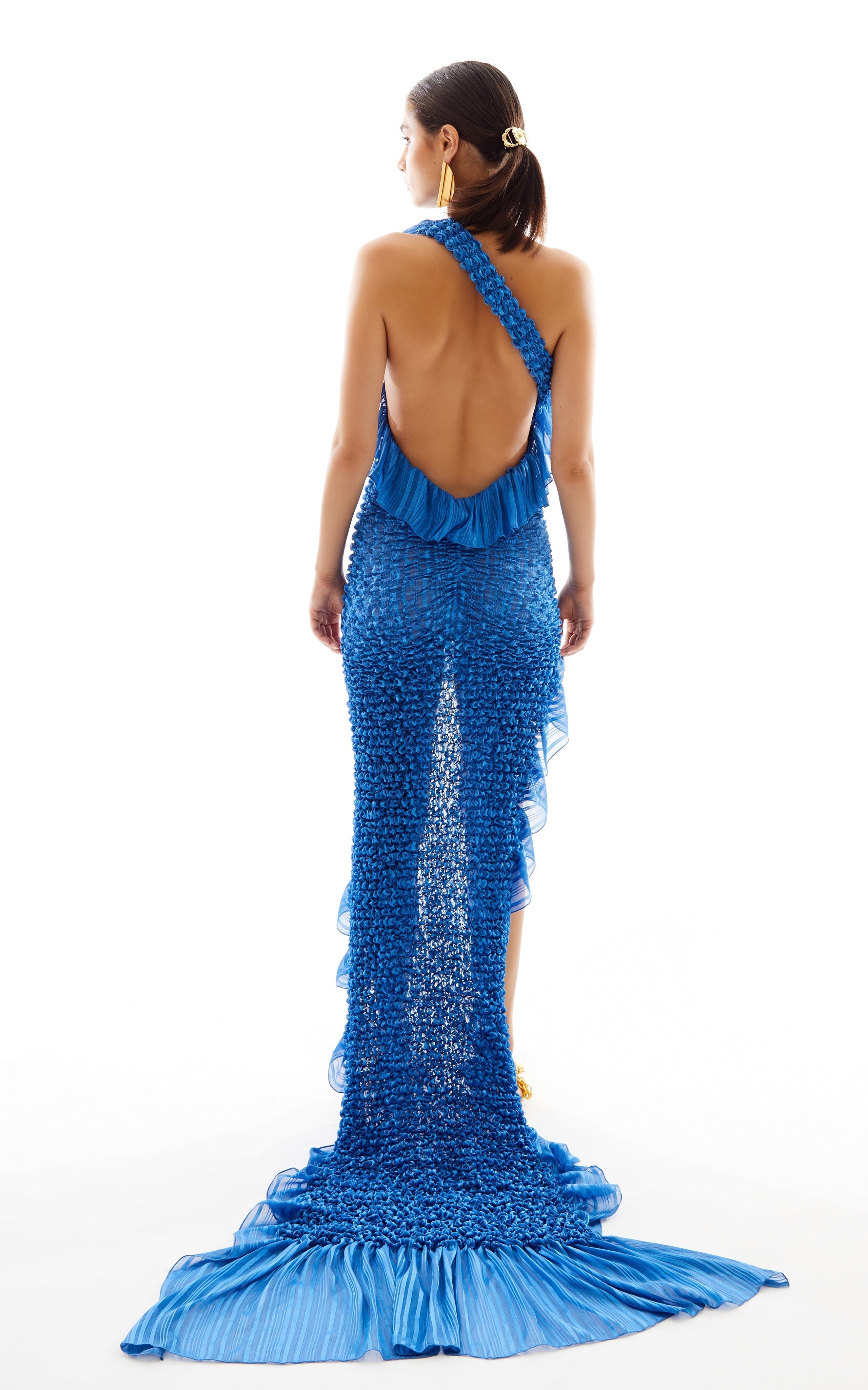 You will feel unique with the sumptuous maxi tail of this one-shoulder dress.