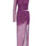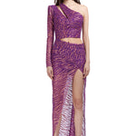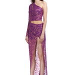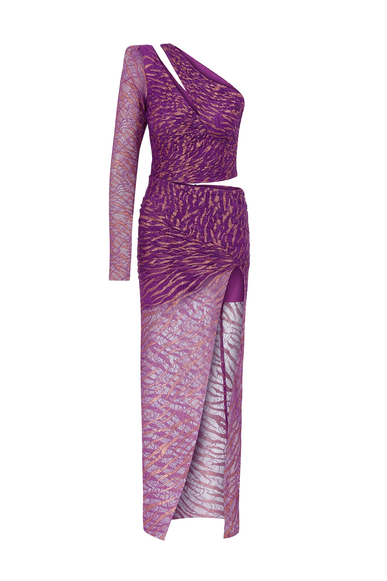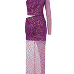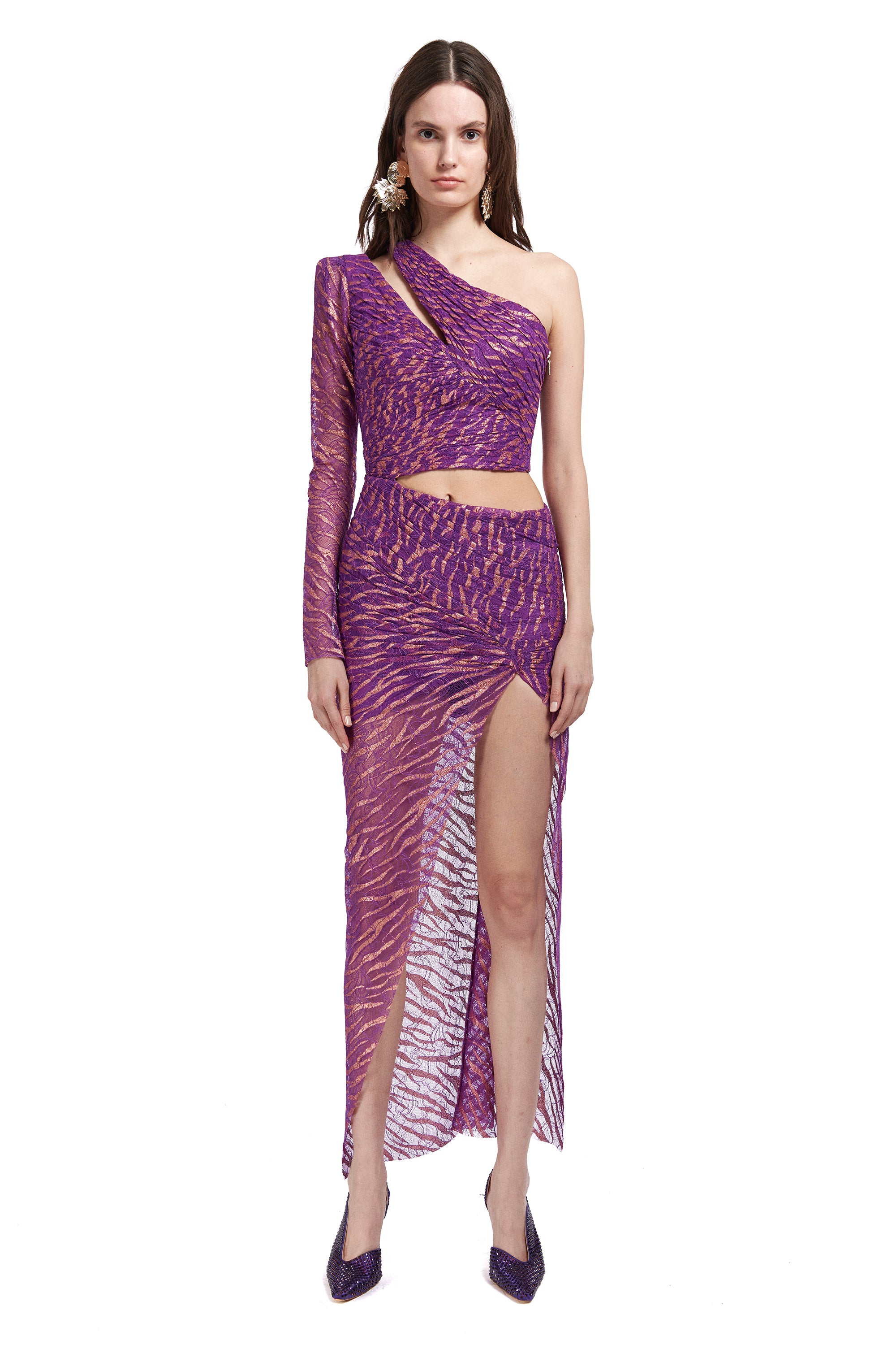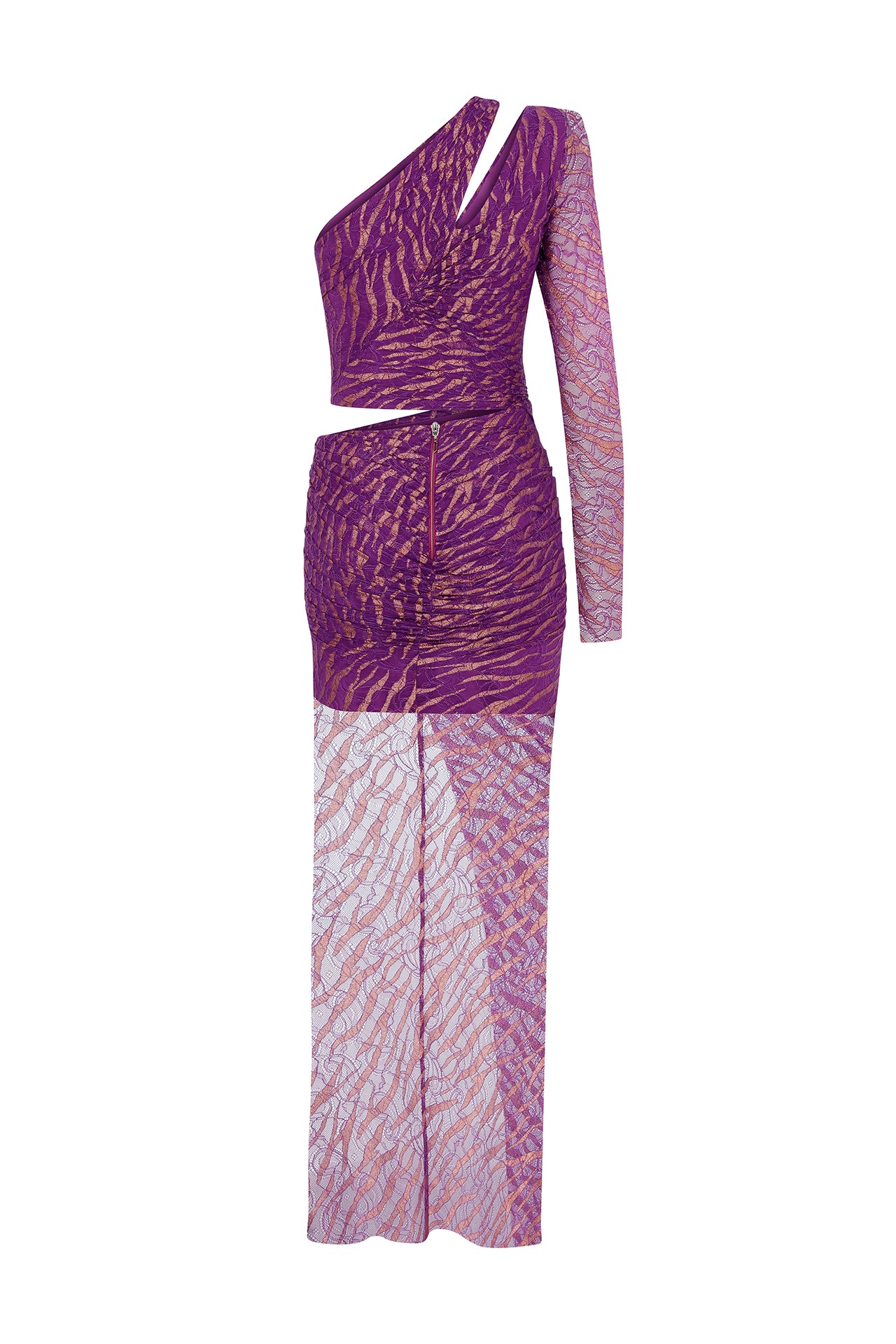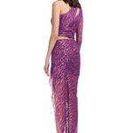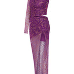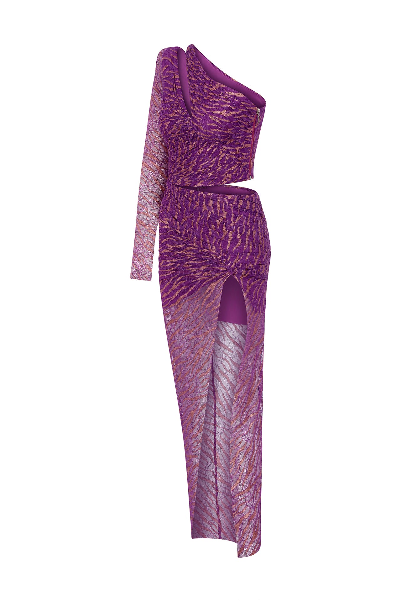 One Shoulder Glittered Lace Midi Dress With High Slit
