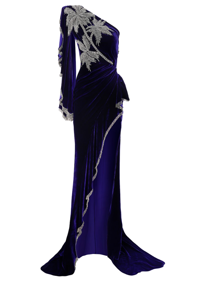 One-shoulder Velvet Maxi Dress