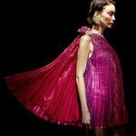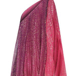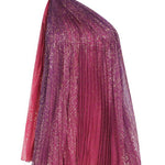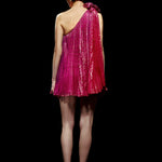 One Shouldered Fuschia Pleated Mini Dress with Crystal Stone Detail