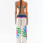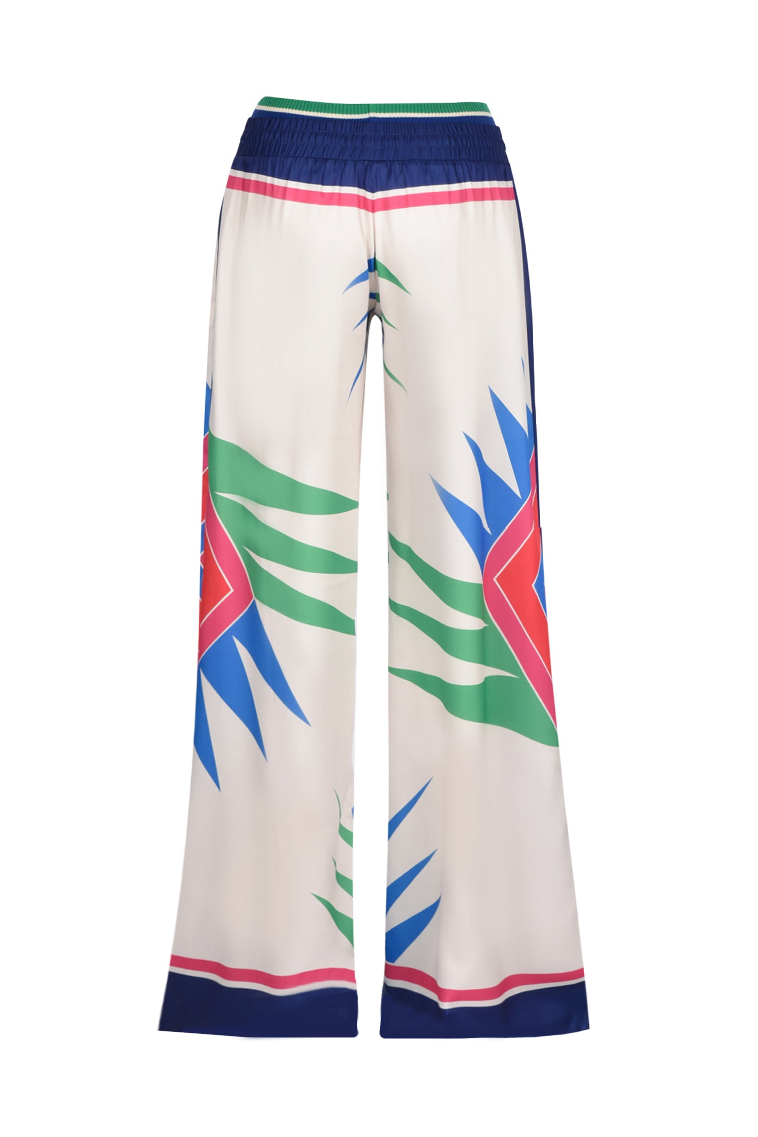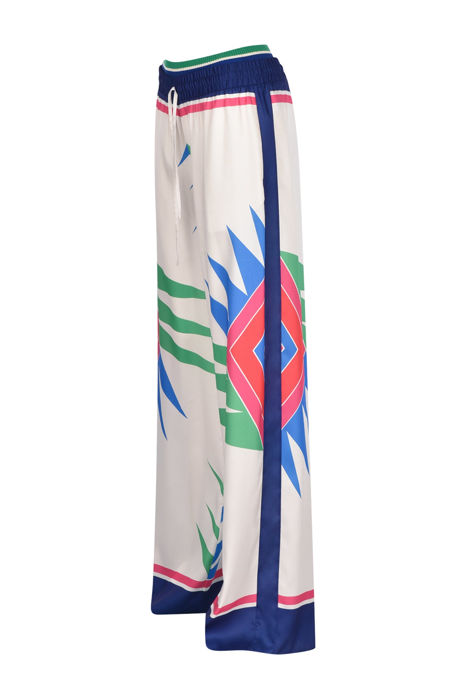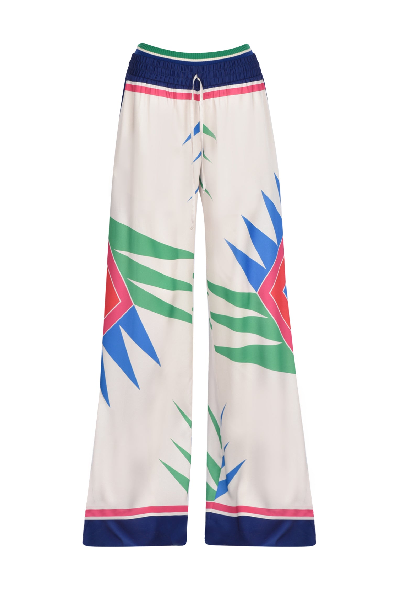 Crafted from luxurious satin fabric, these pants offer both style and comfort. The vibrant pattern adds personality to your look. The loose fit provides ease of movement, while the knit belt adds a chic finishing touch.