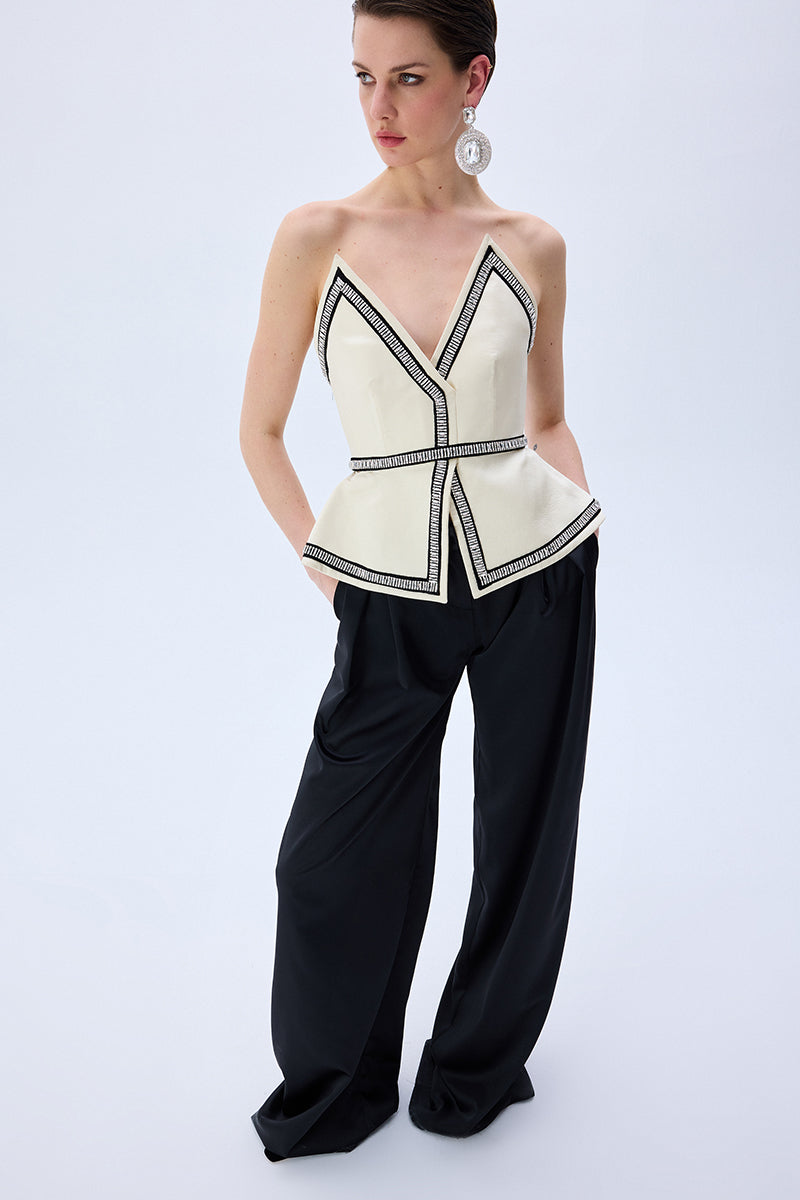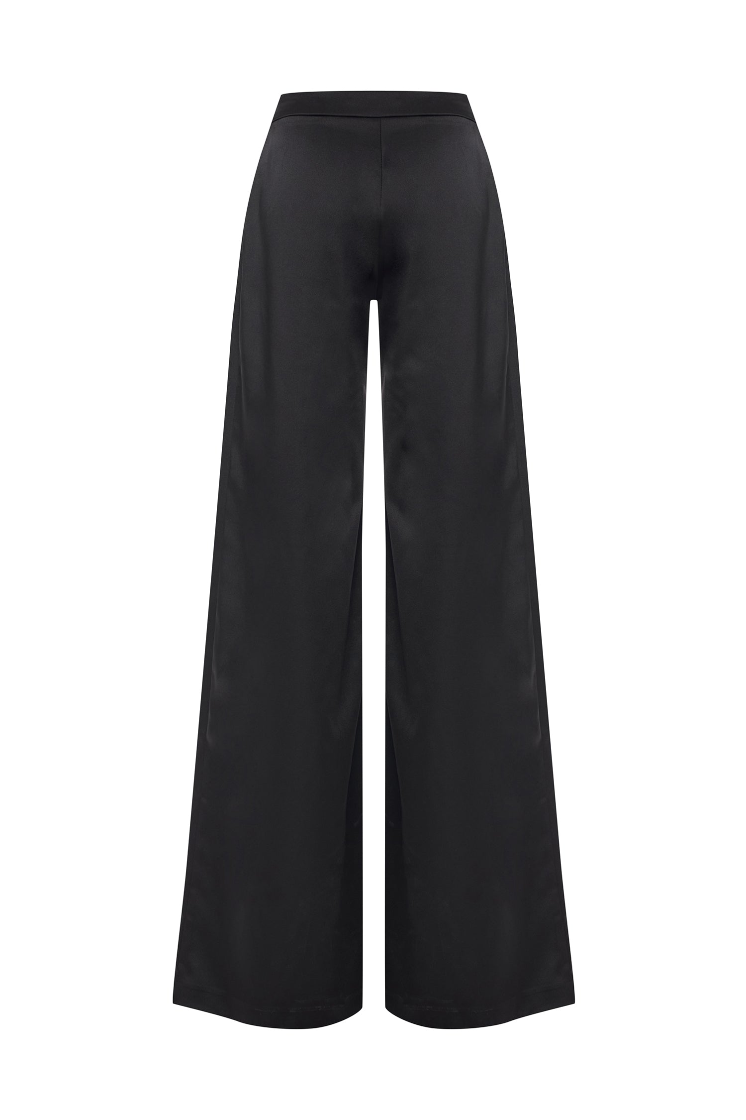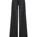 Tailored to perfection with a wide-leg silhouette, the pleated black satin pants bring a graceful fluidity to every movement. Their subtle sheen adds a refined edge, making them a versatile staple for elegant evenings or elevated daywear.