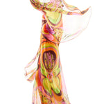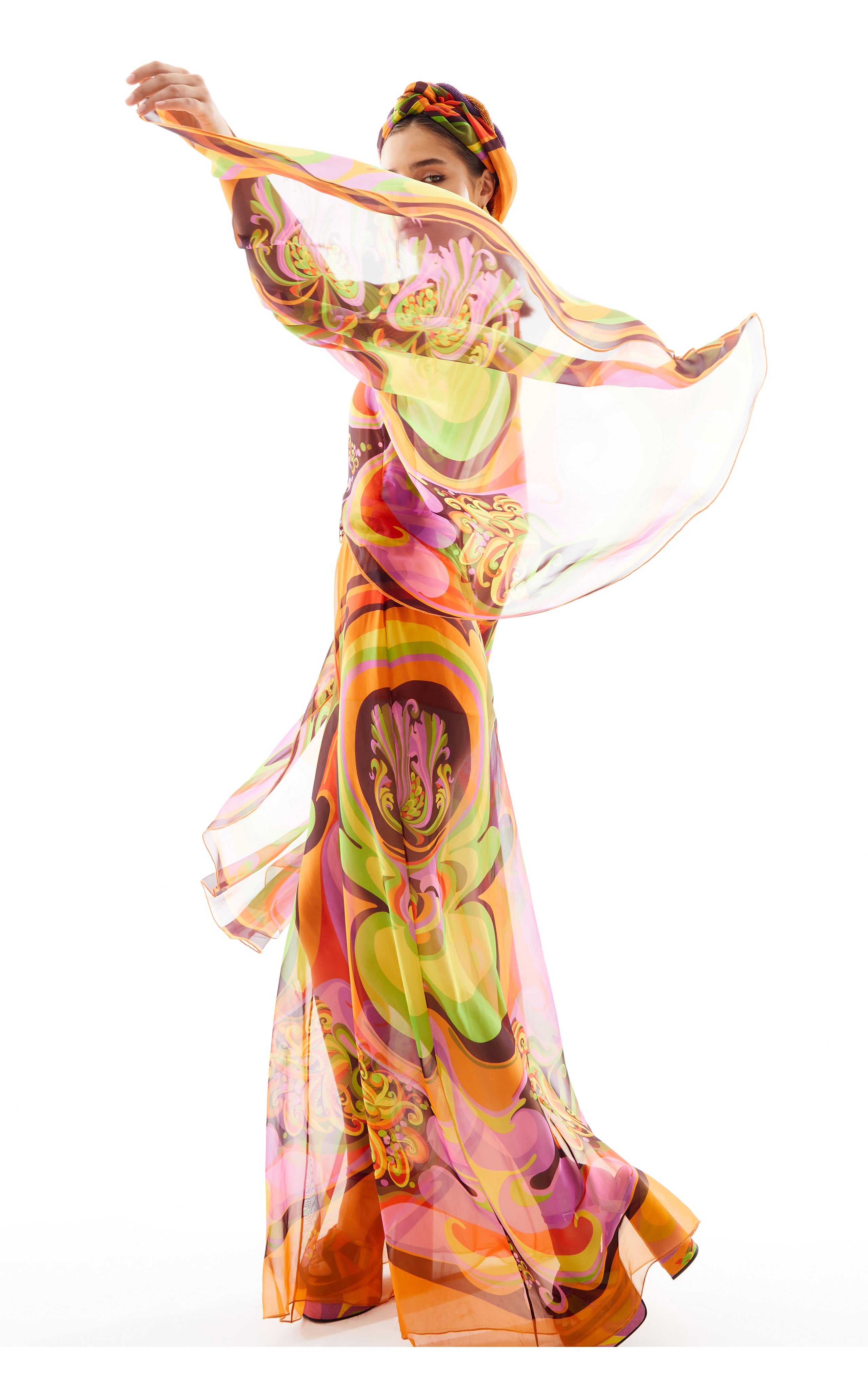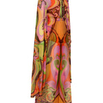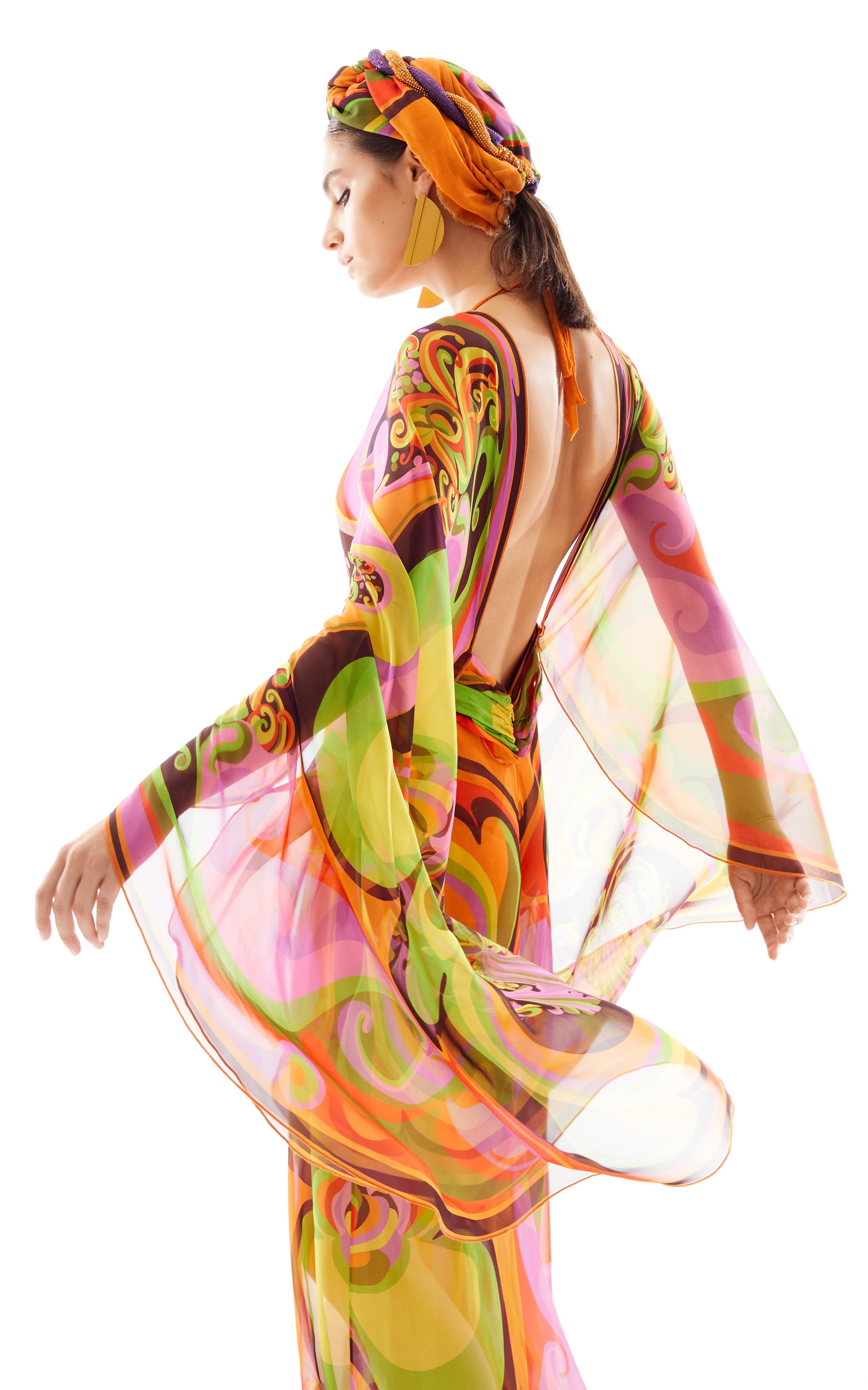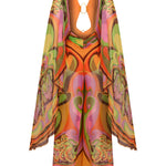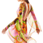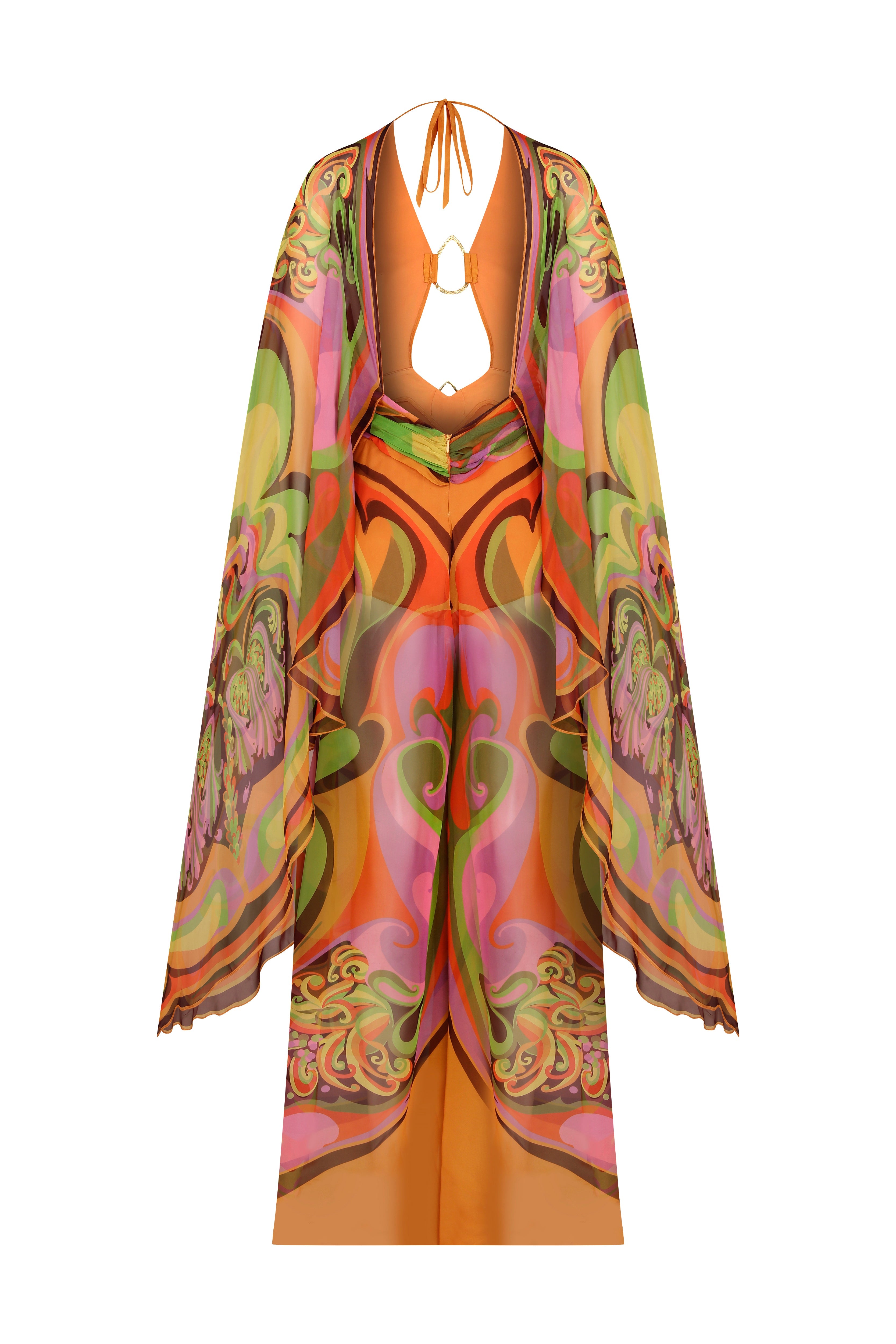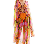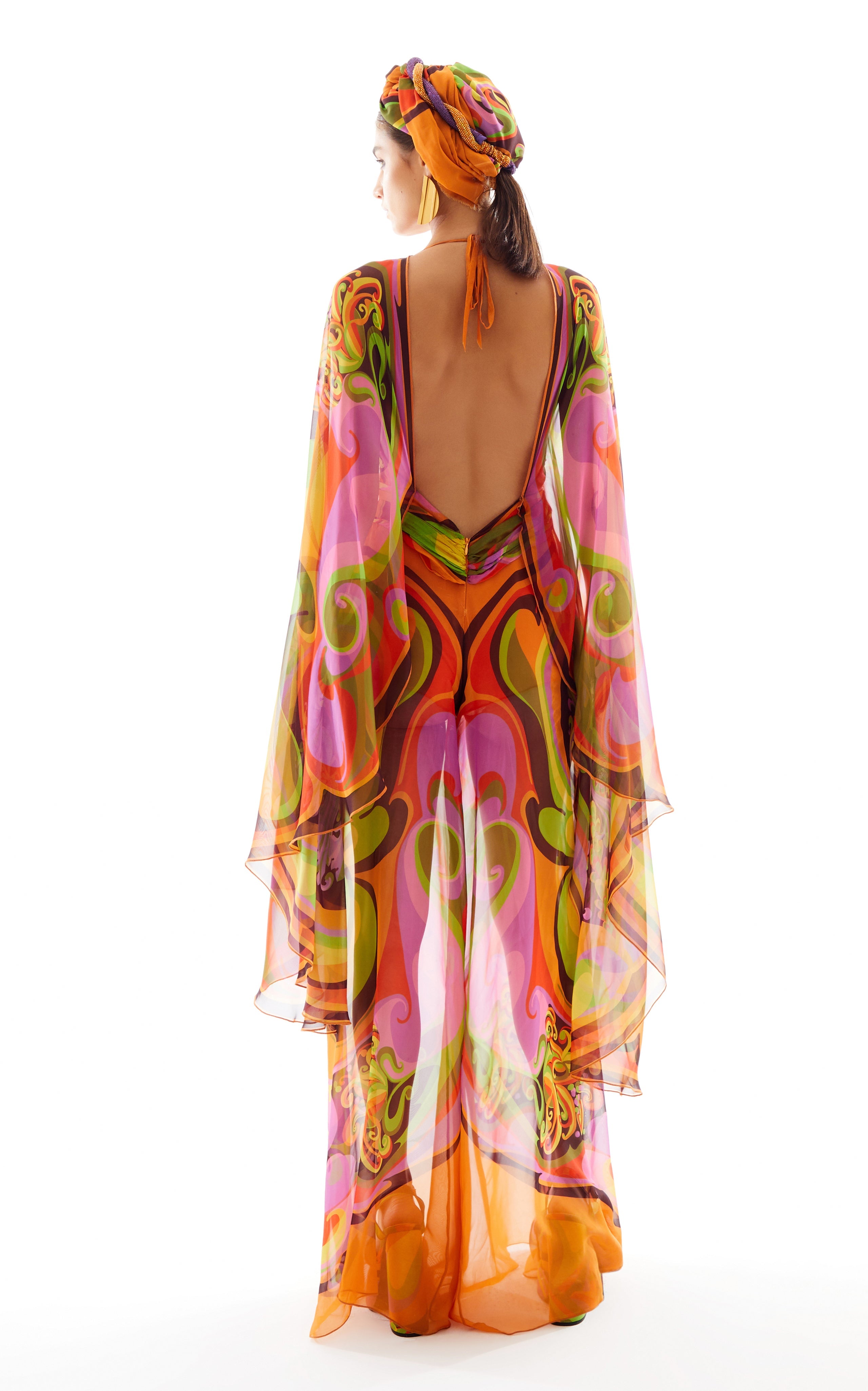 Printed Chiffon Jumpsuit with Deep Neck and Gold Buckle