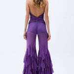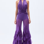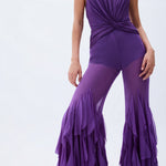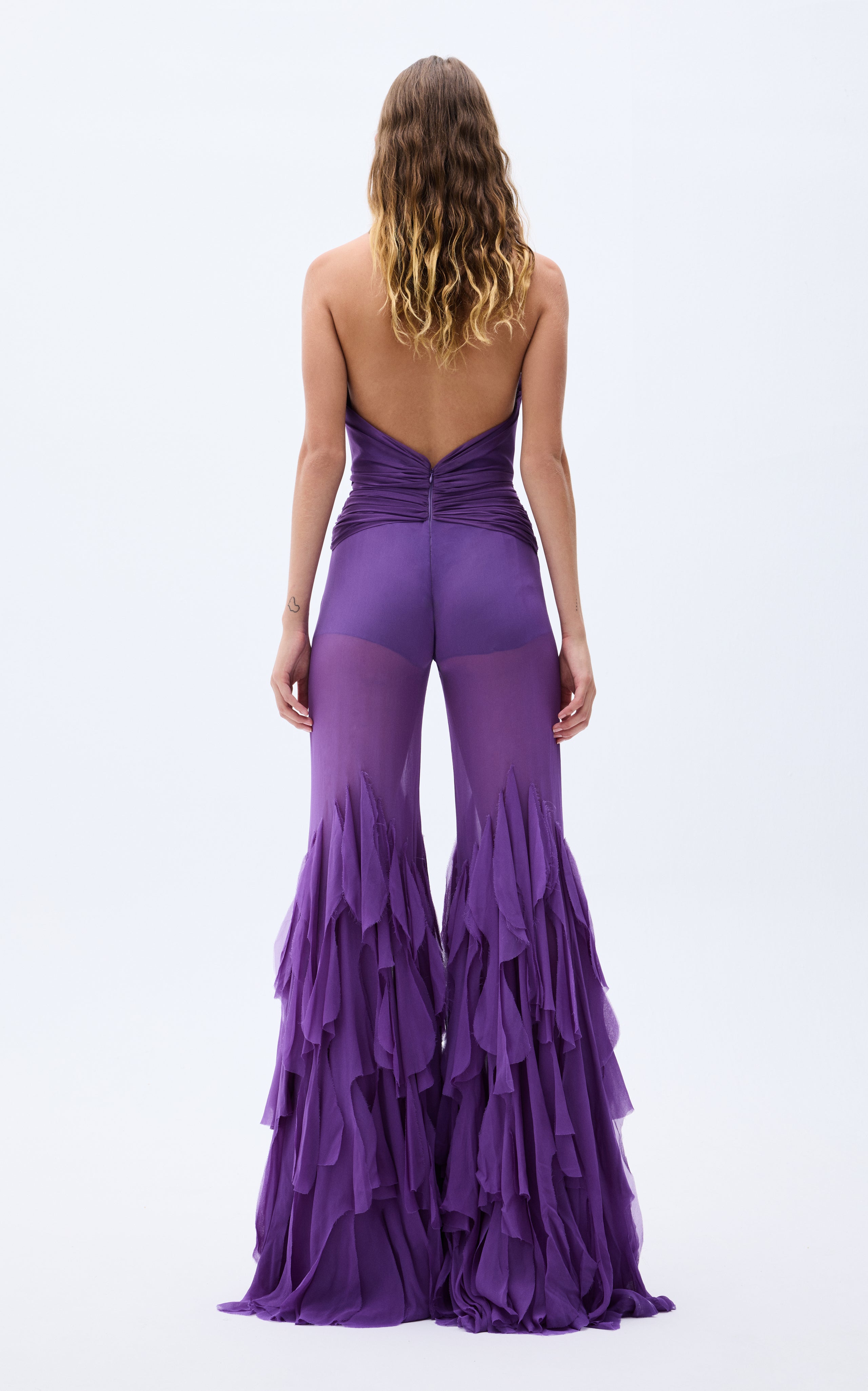 Purple Chiffon Jumpsuit With Laser Cut Frilled Cuffs