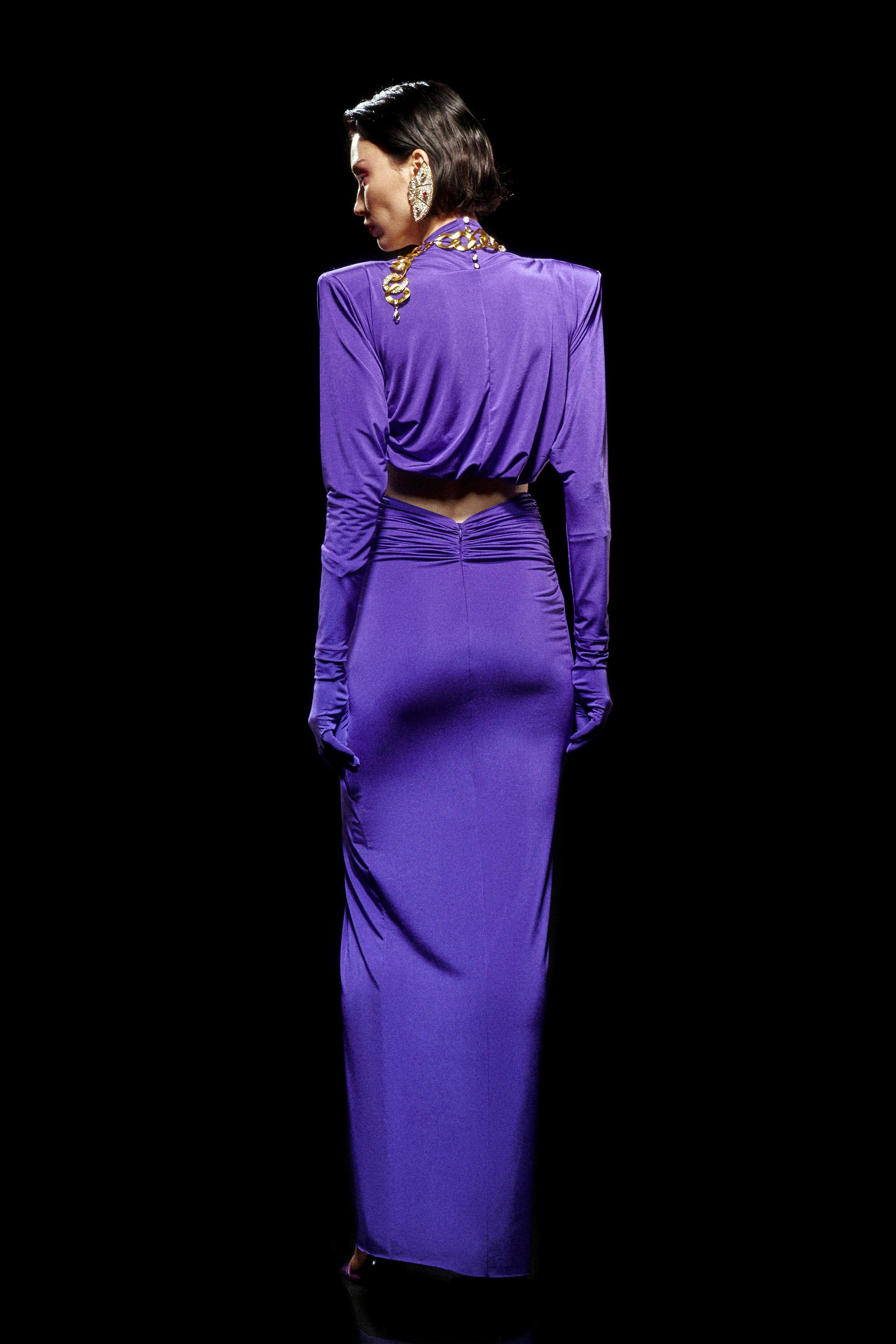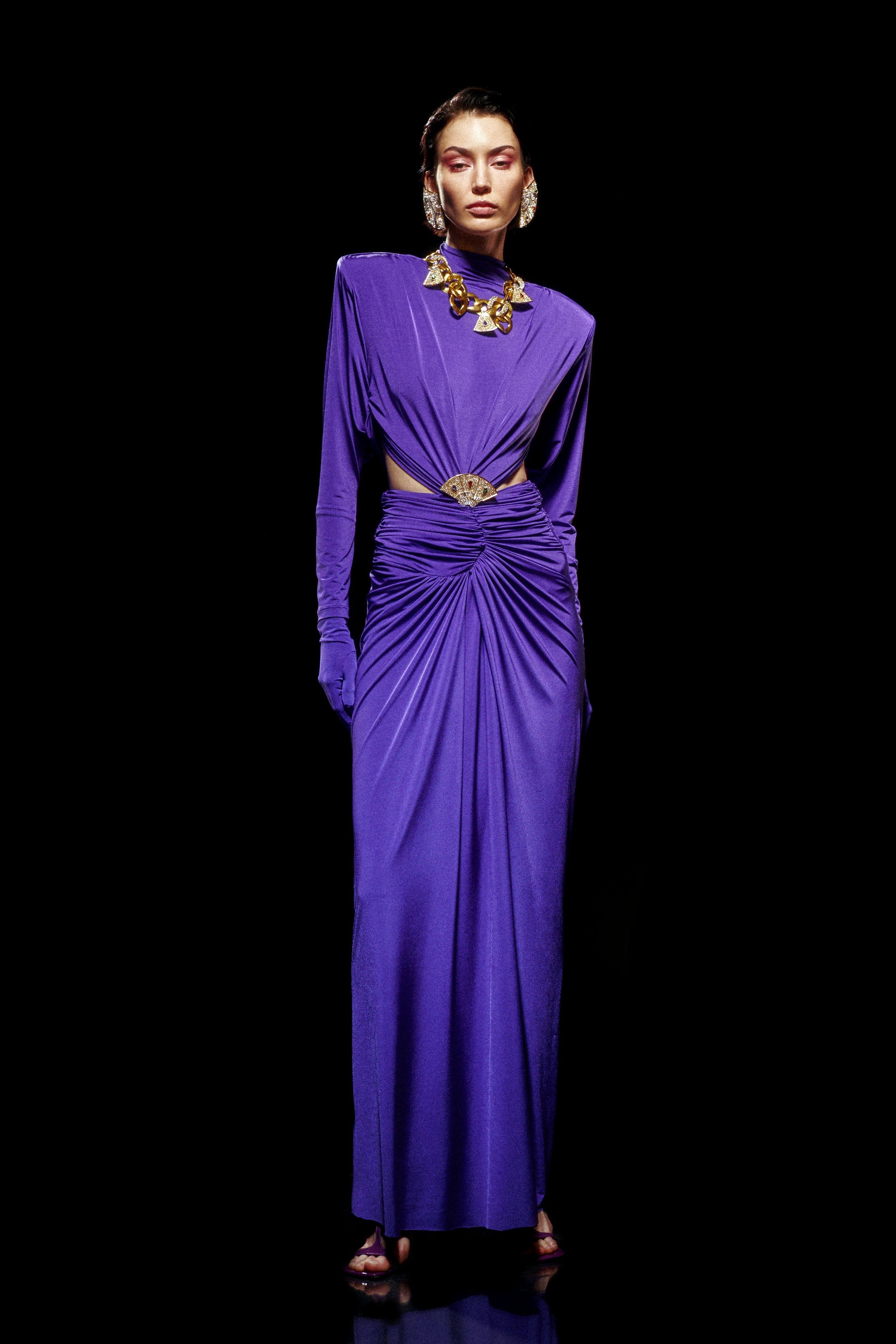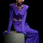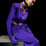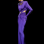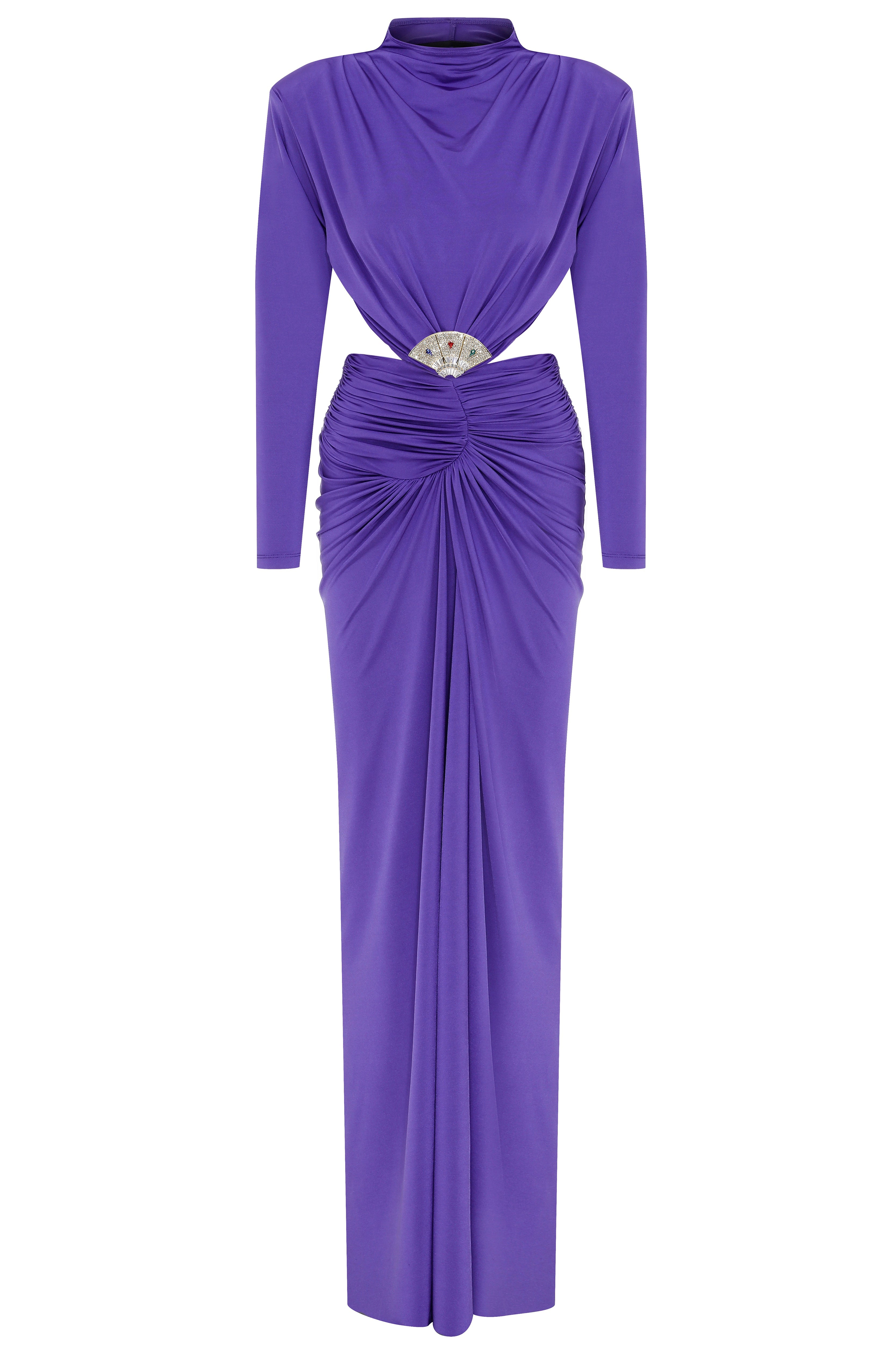 Purple Jersey Maxi Dress with Crystal Stoned Details