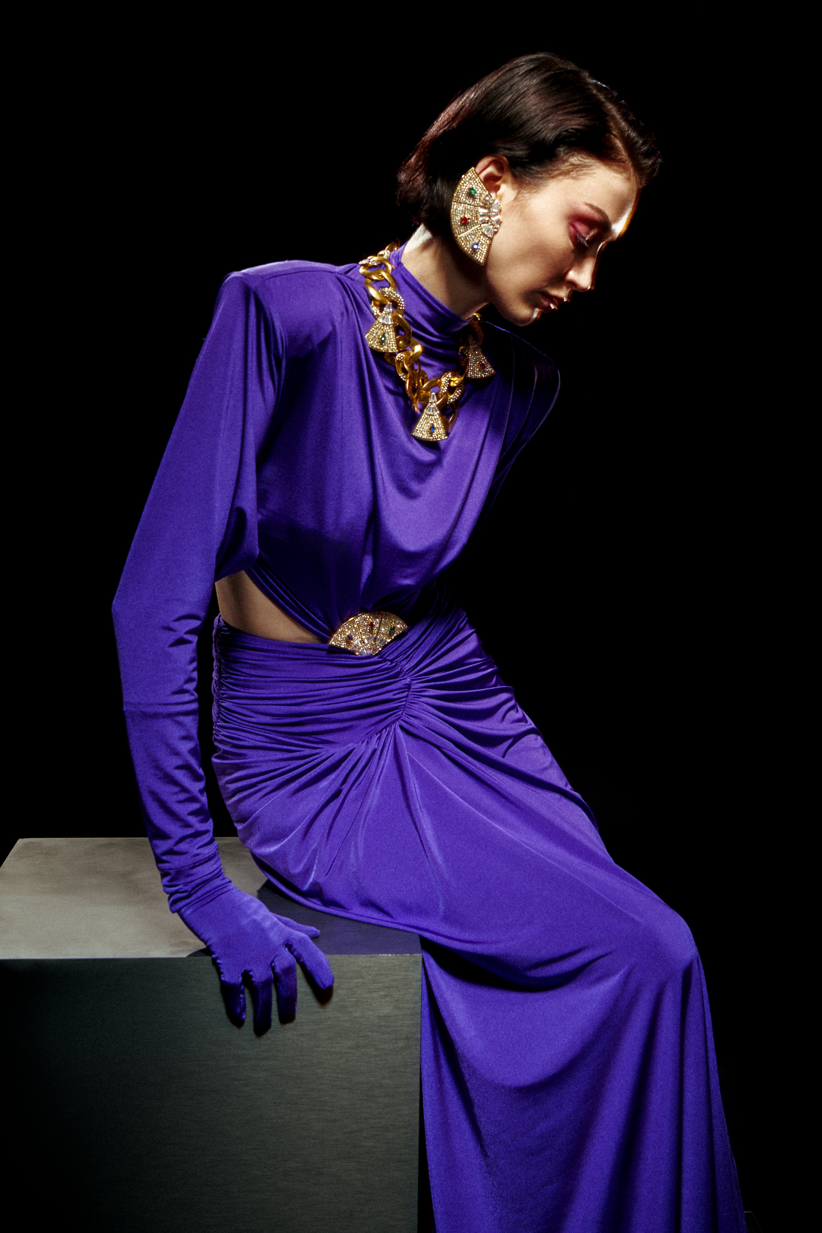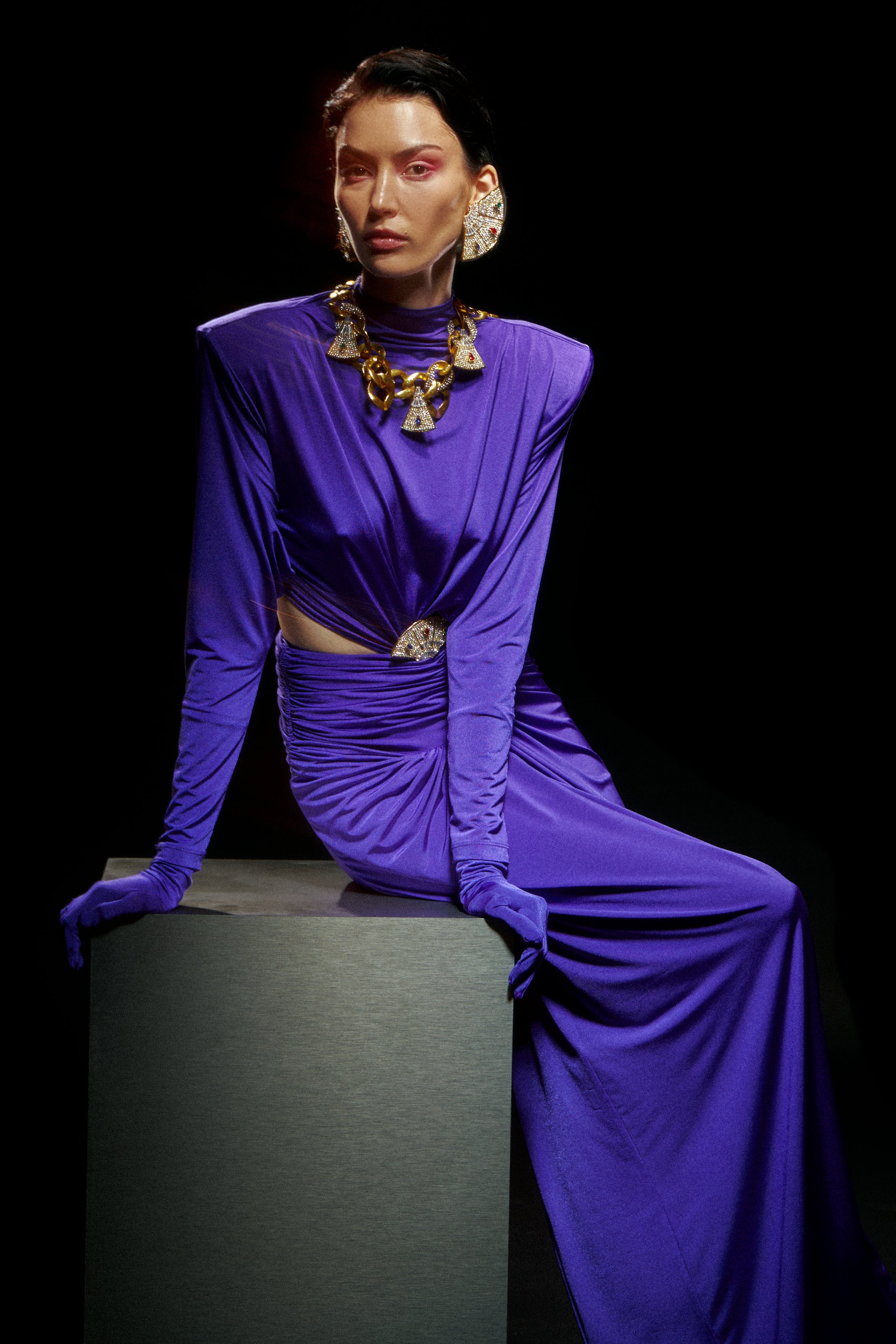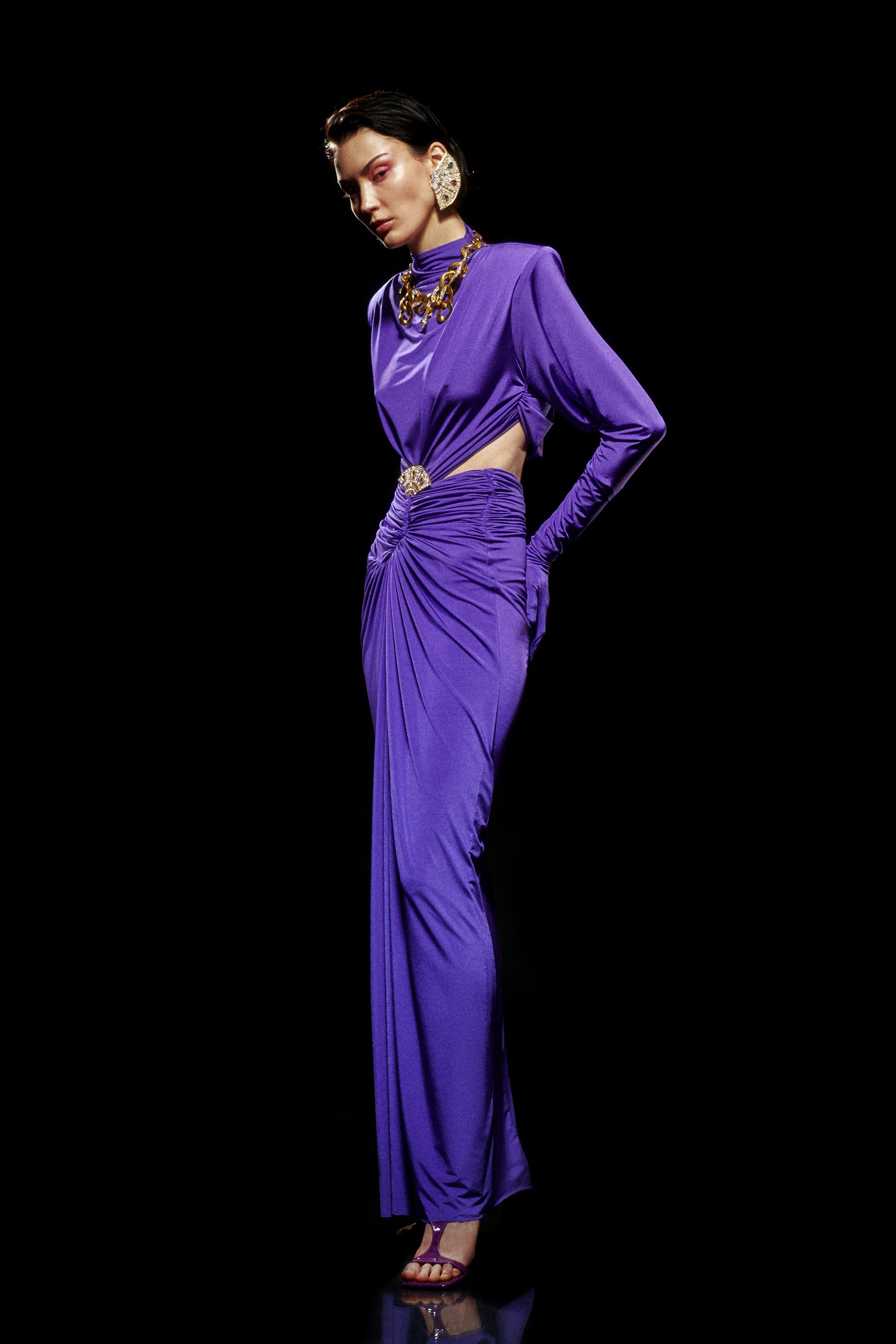 Purple Jersey Maxi Dress with Crystal Stoned Details