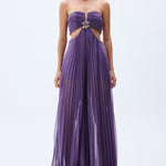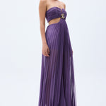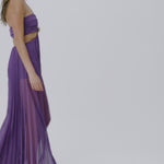 Purple Pleated Chiffon Jumpsuit With Swarovski Stone Detail
