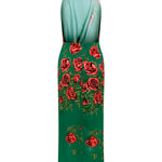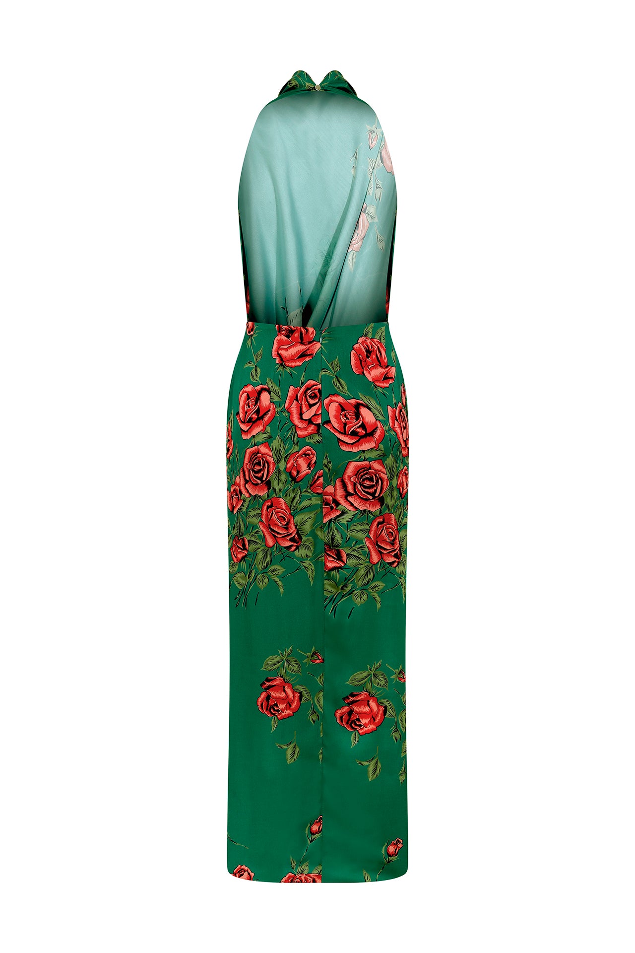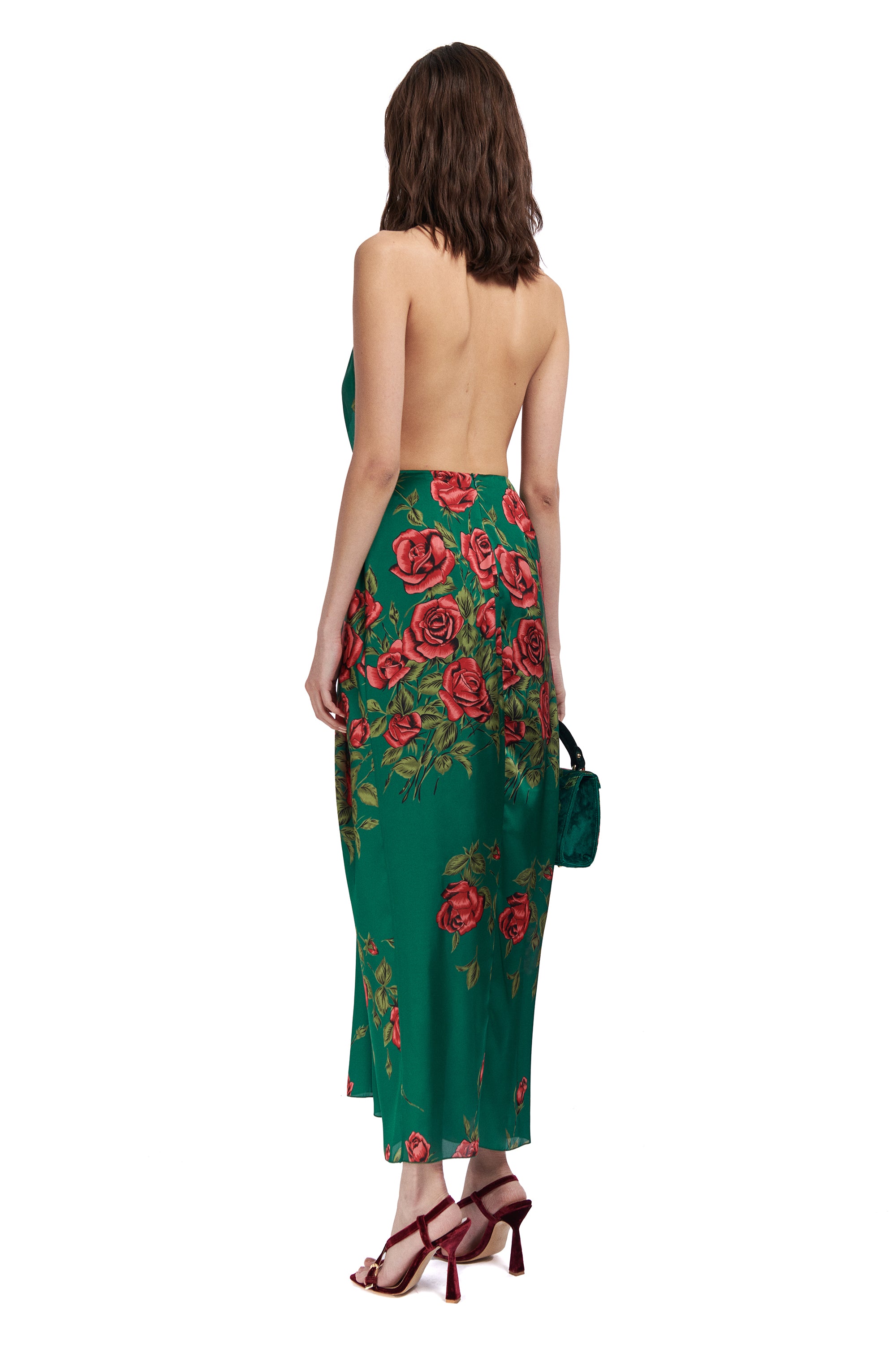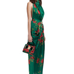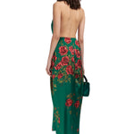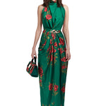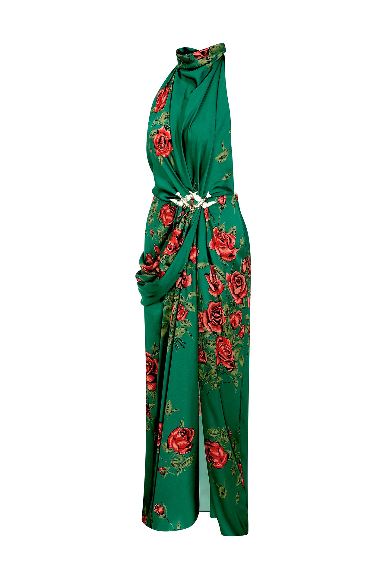 Rose Patterned Halter Neck Draped Midi Dress