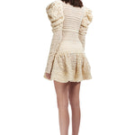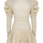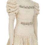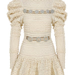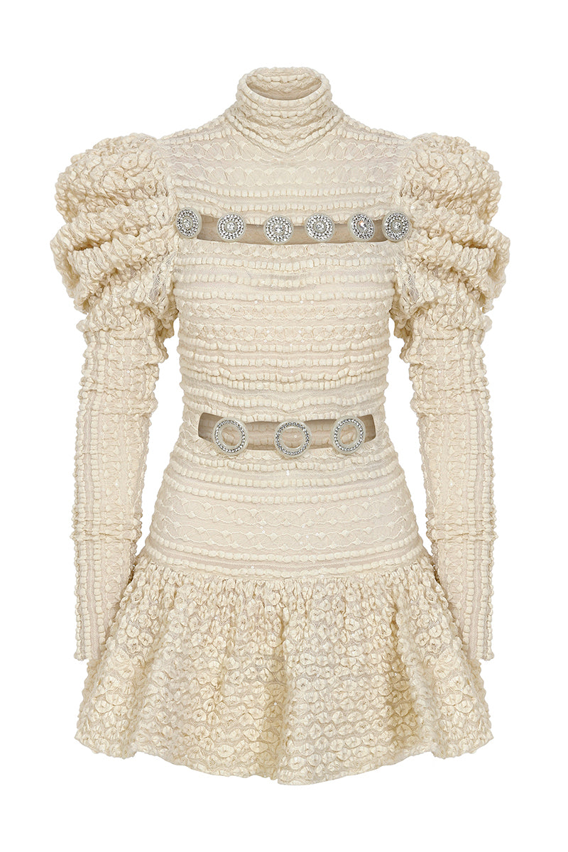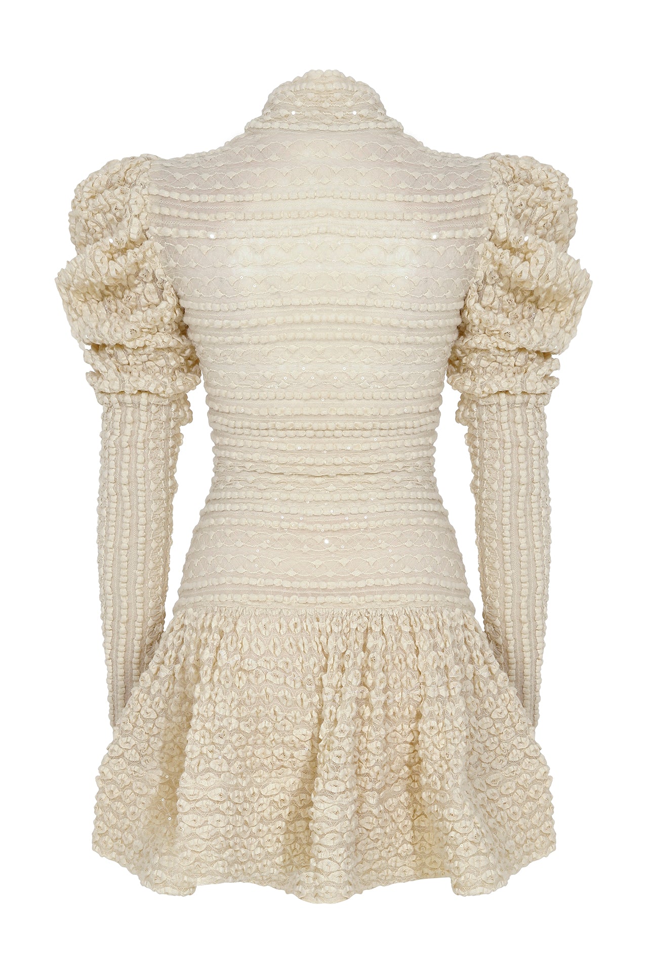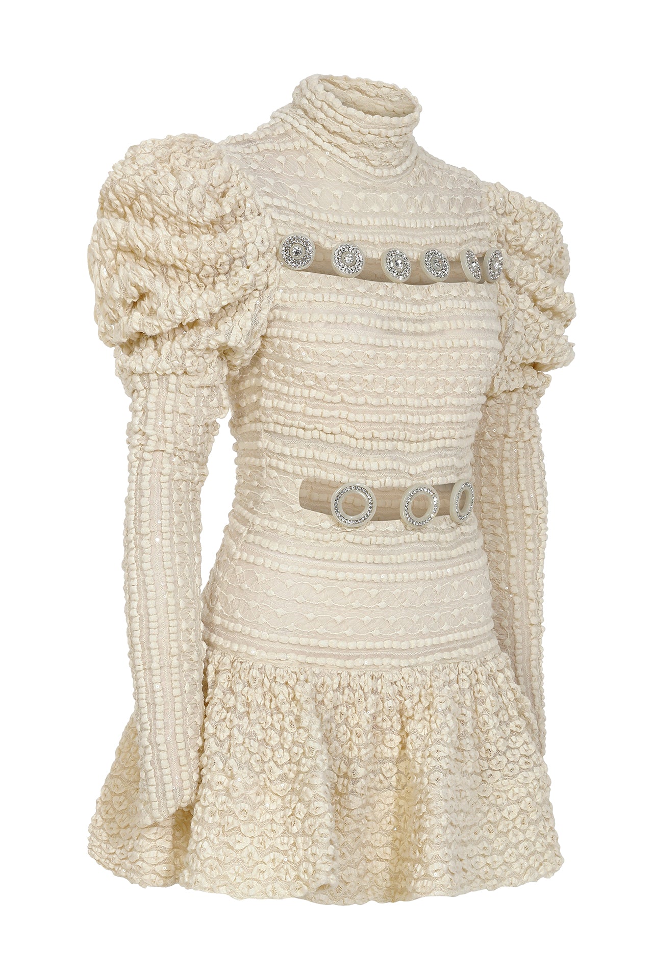 Sequined Knit Turtle Neck Mini Dress With Crystal Buttons