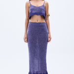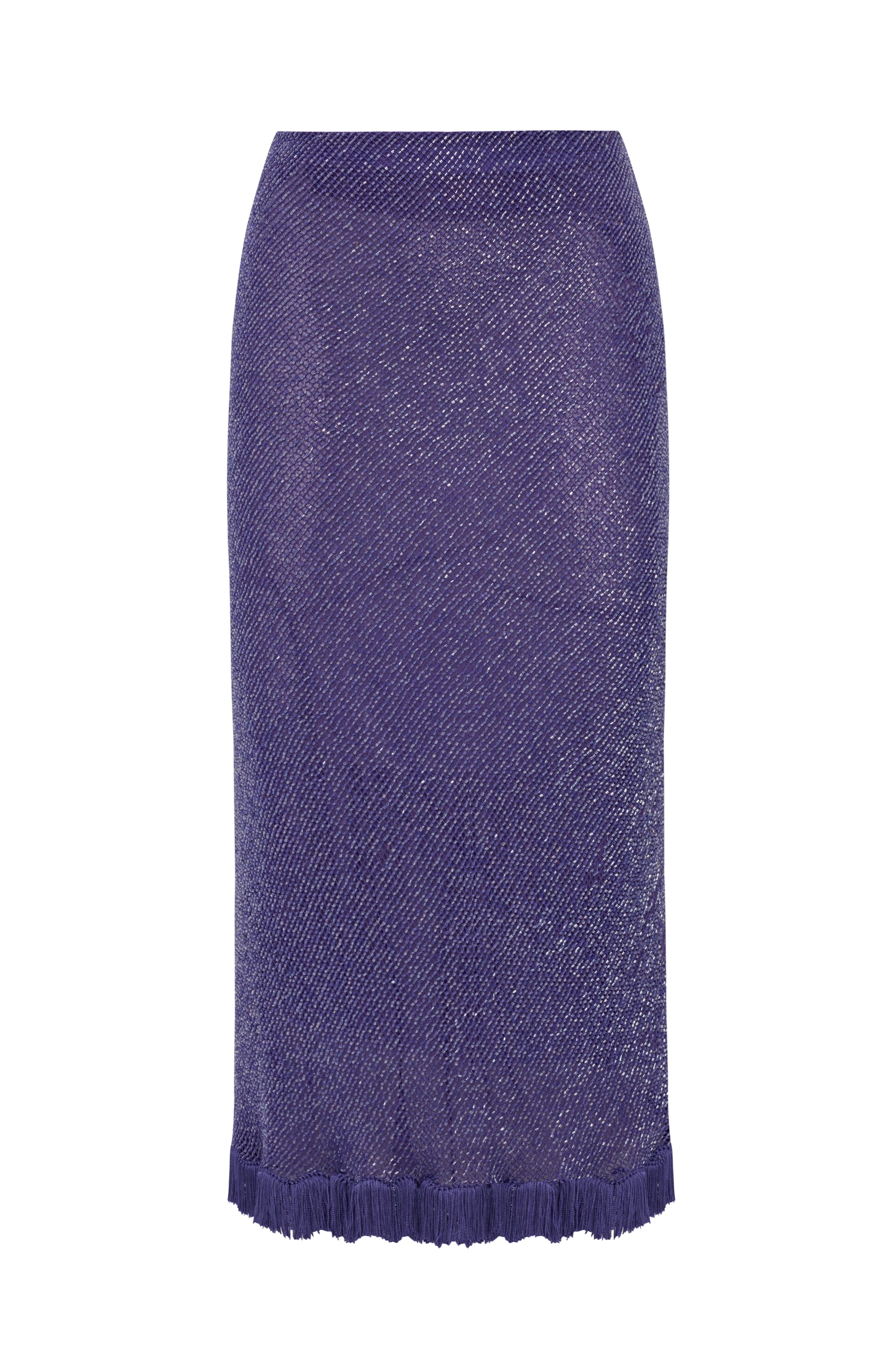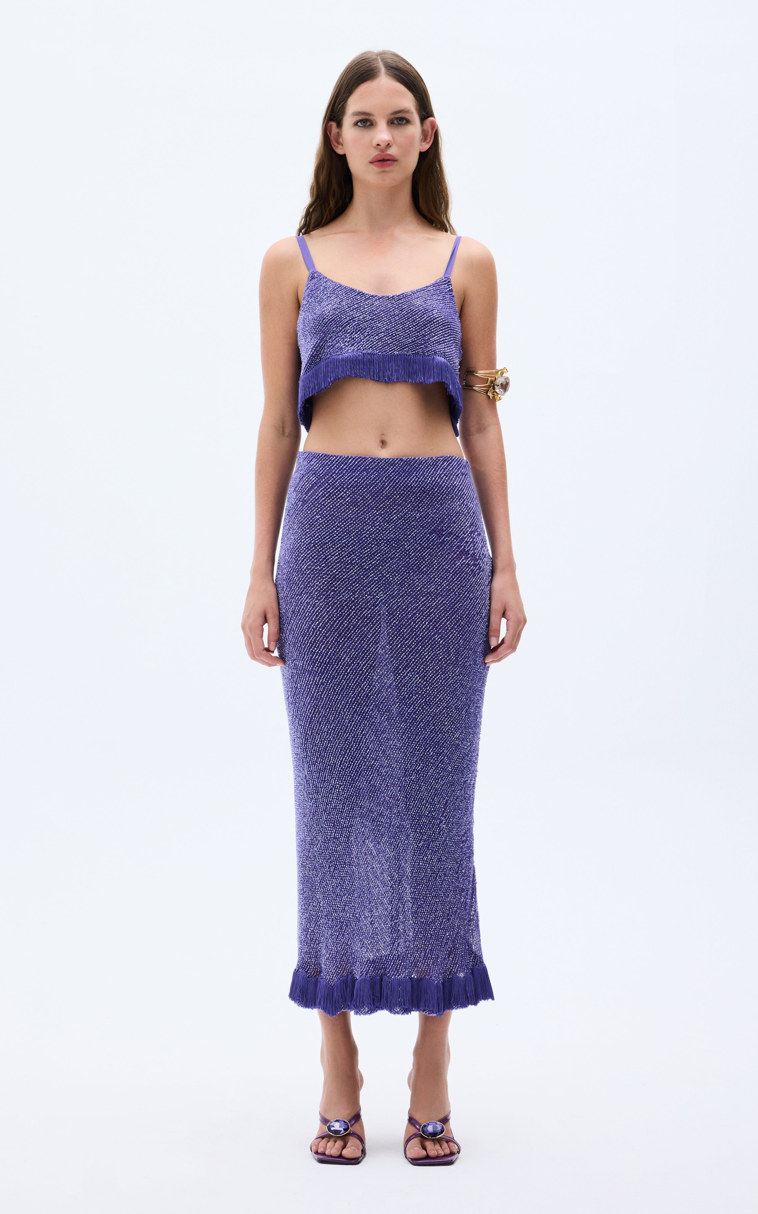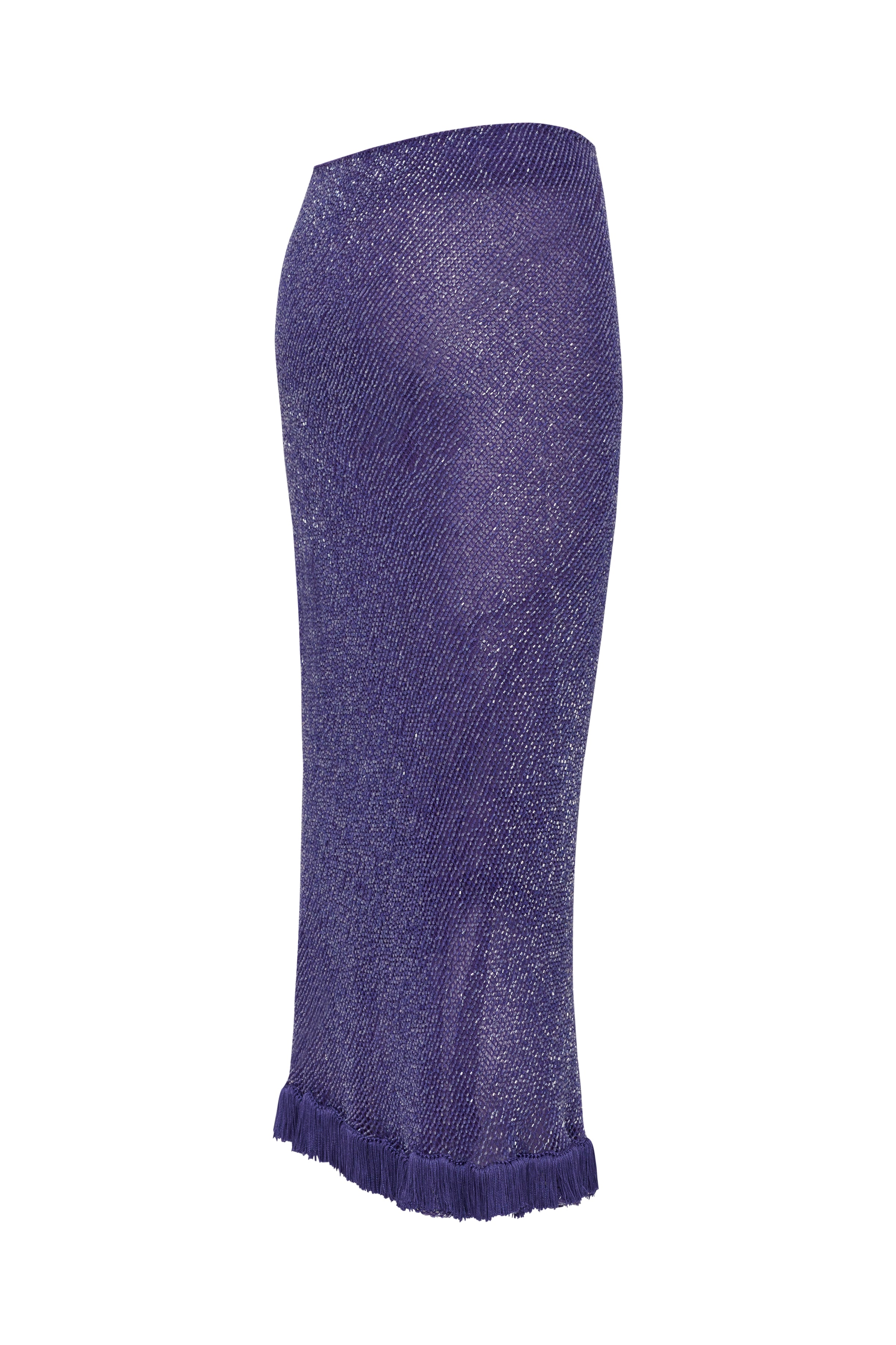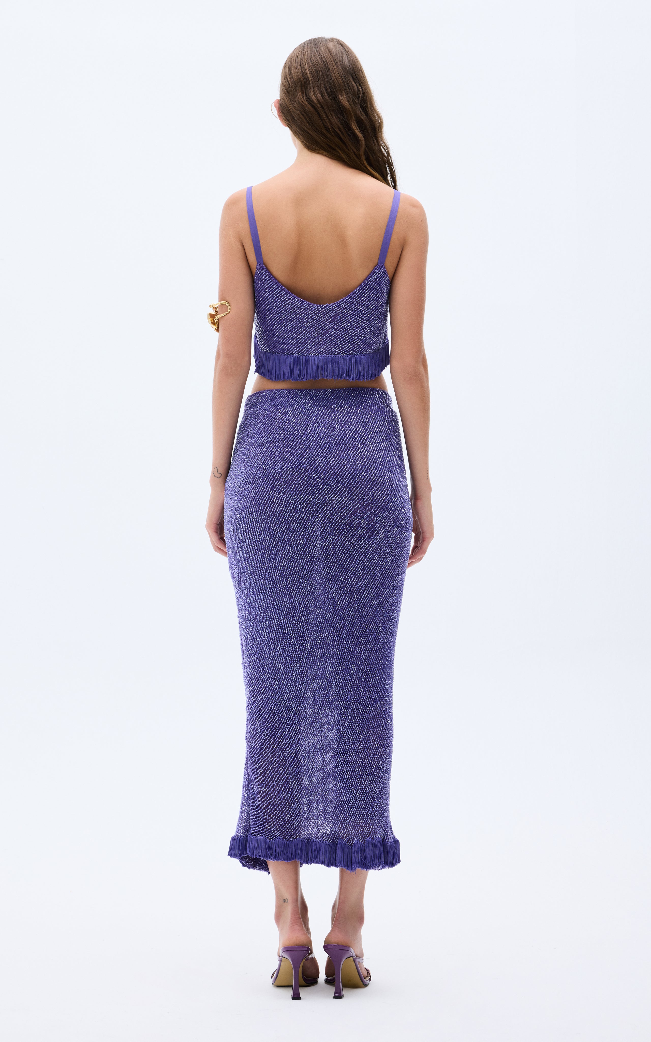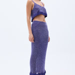 Sequined Net Maxi Skirt With Handmade Silk Fringes