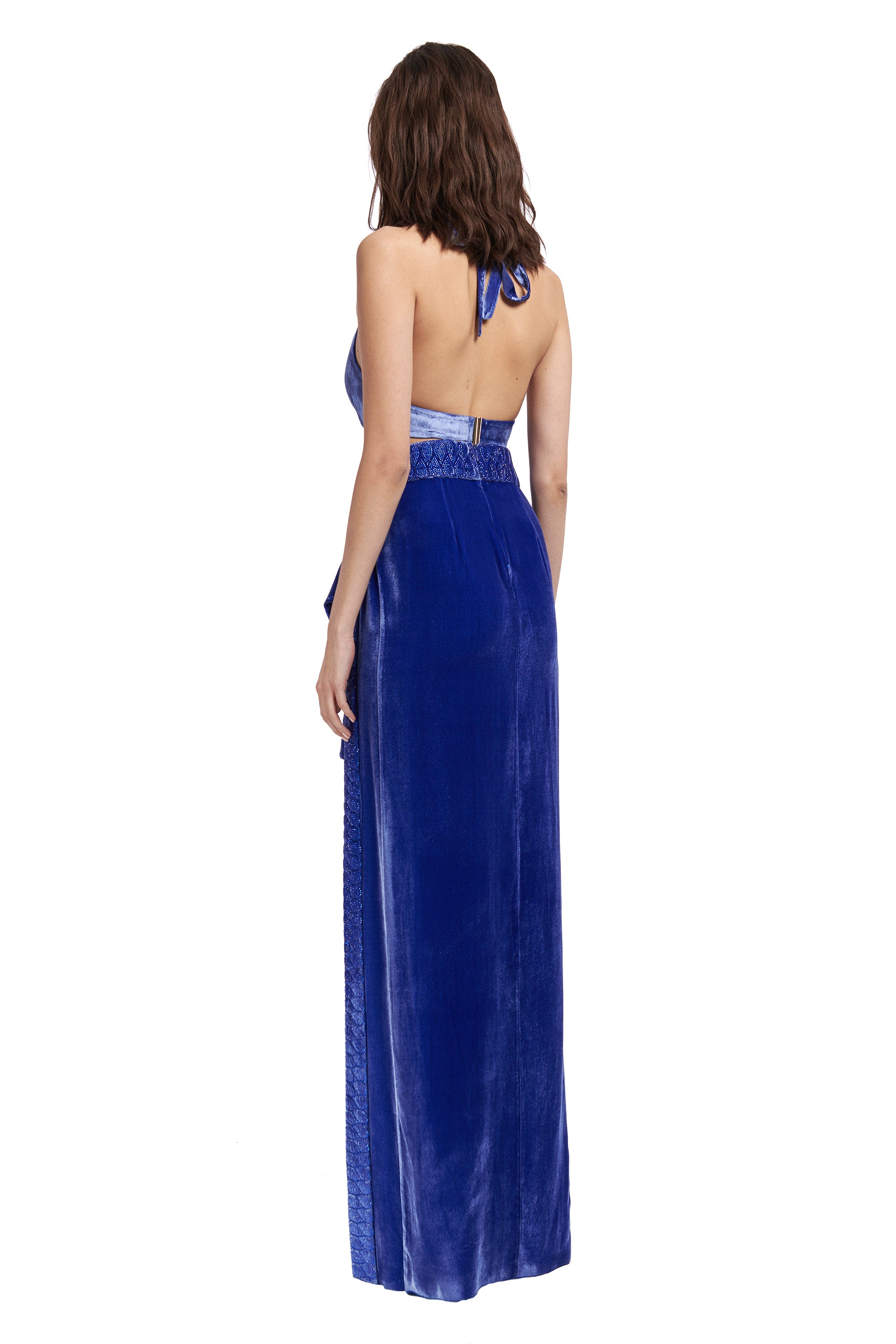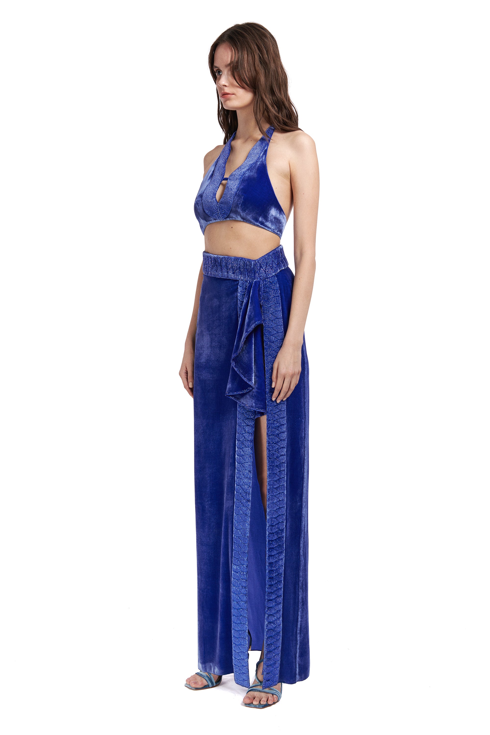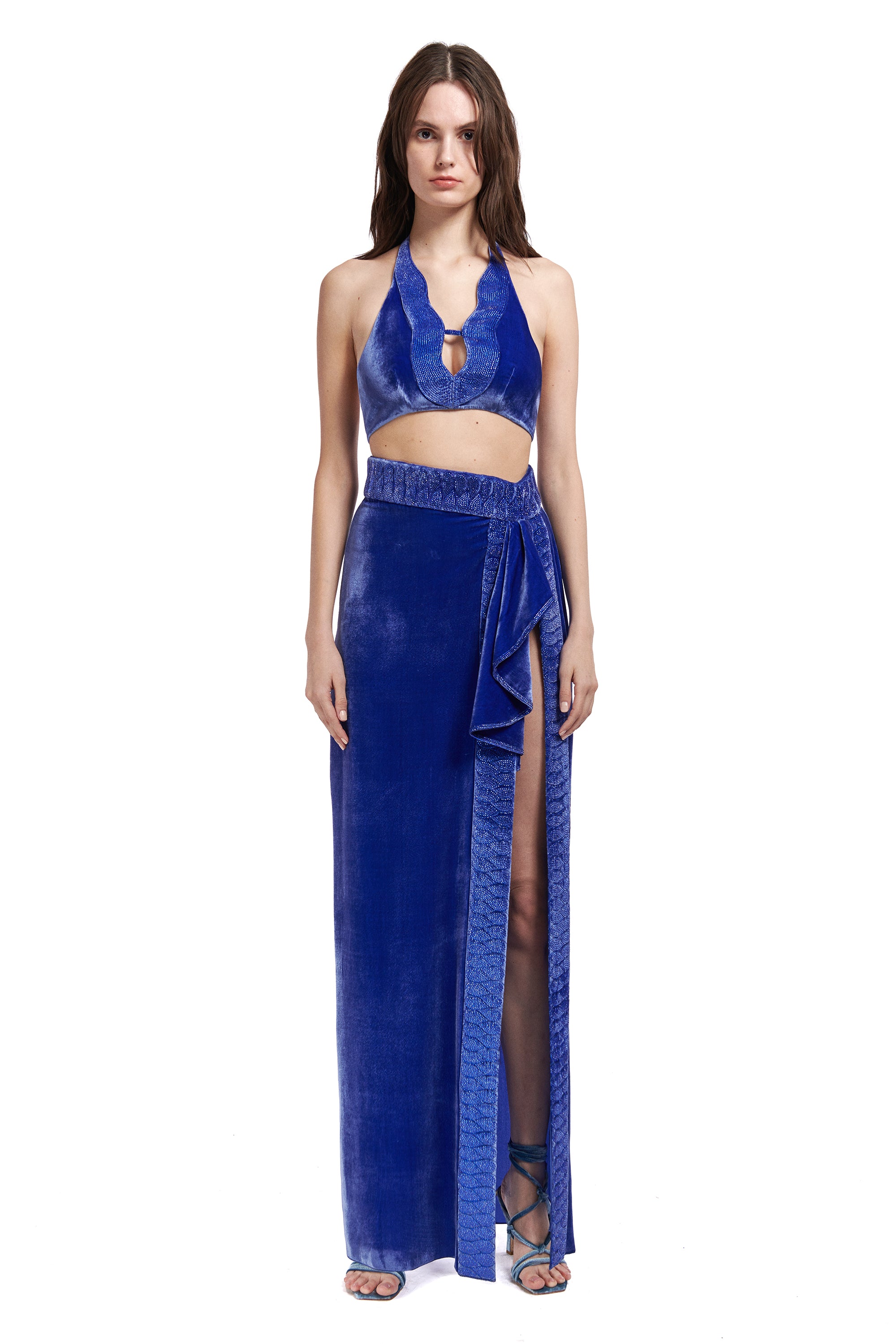 Silk Velvet Maxi Skirt With Crystal Embellished Detail