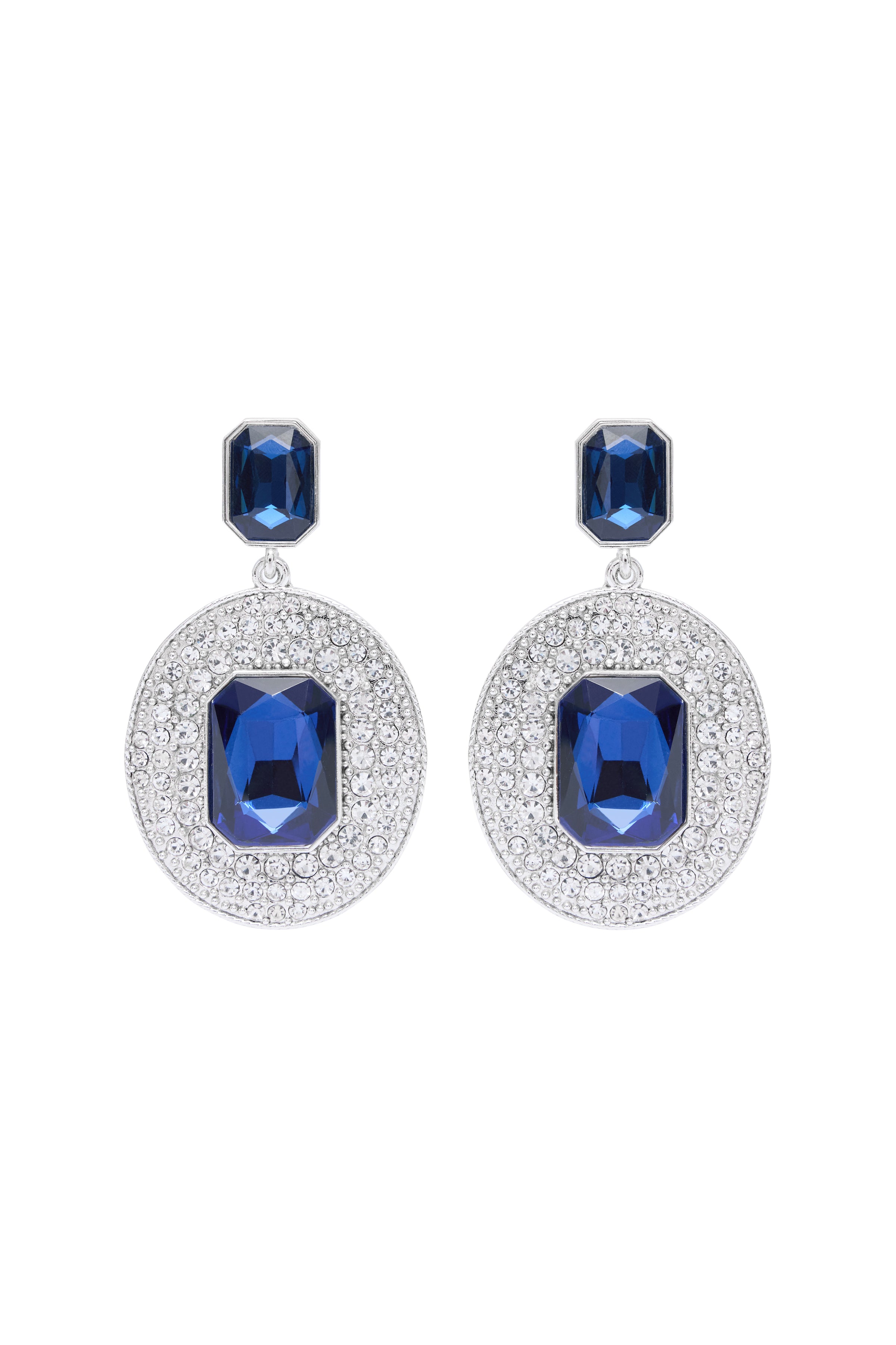 Silver Metal Earrings With Crystals And Sapphire Stones