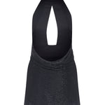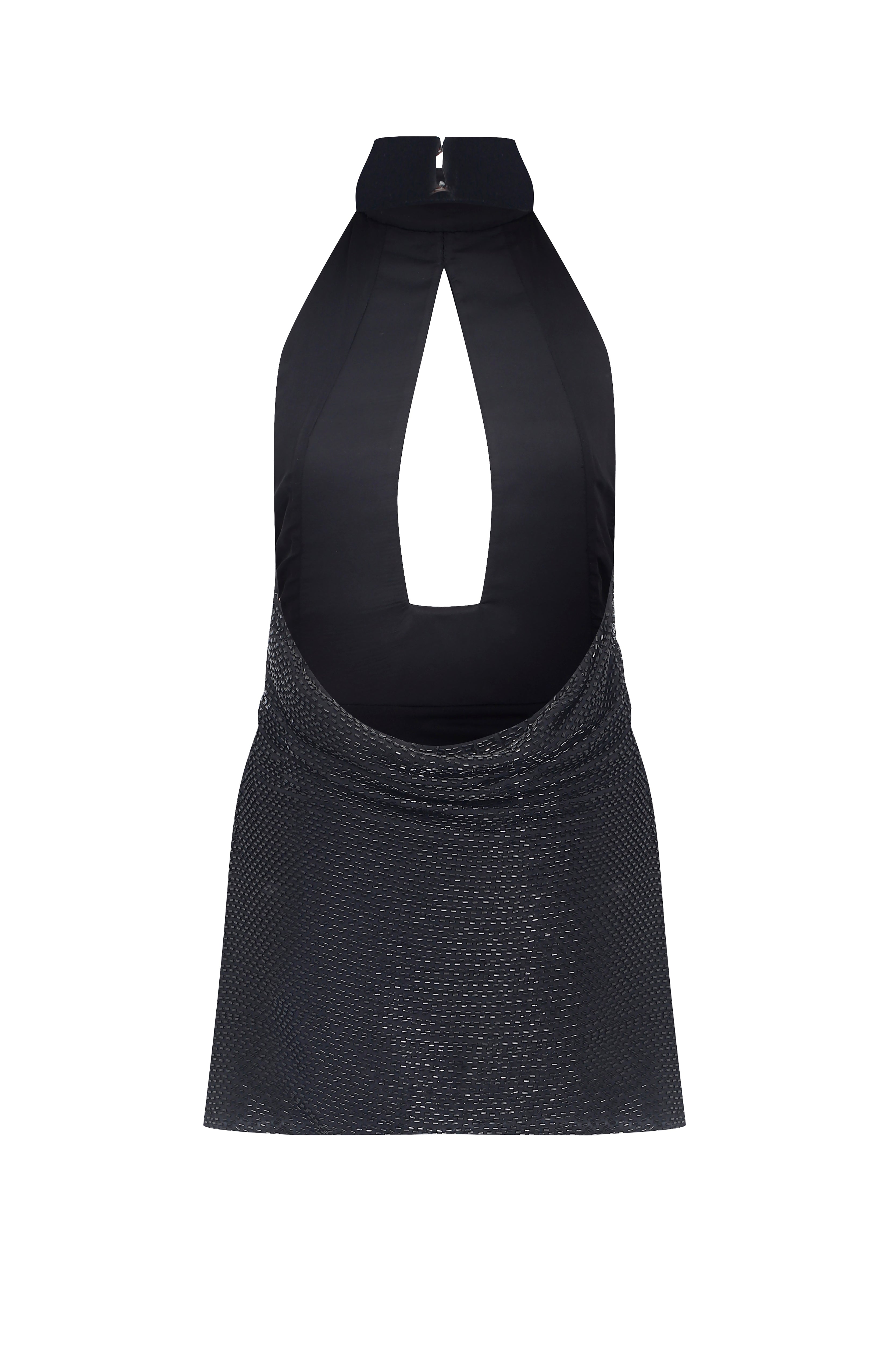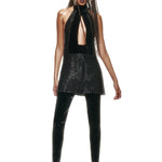 Stone Embroidered Black Mini Dress with Velvet Neck Detail