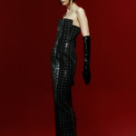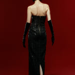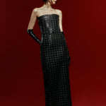 Strapless Black Sequined Tweed Maxi Dress