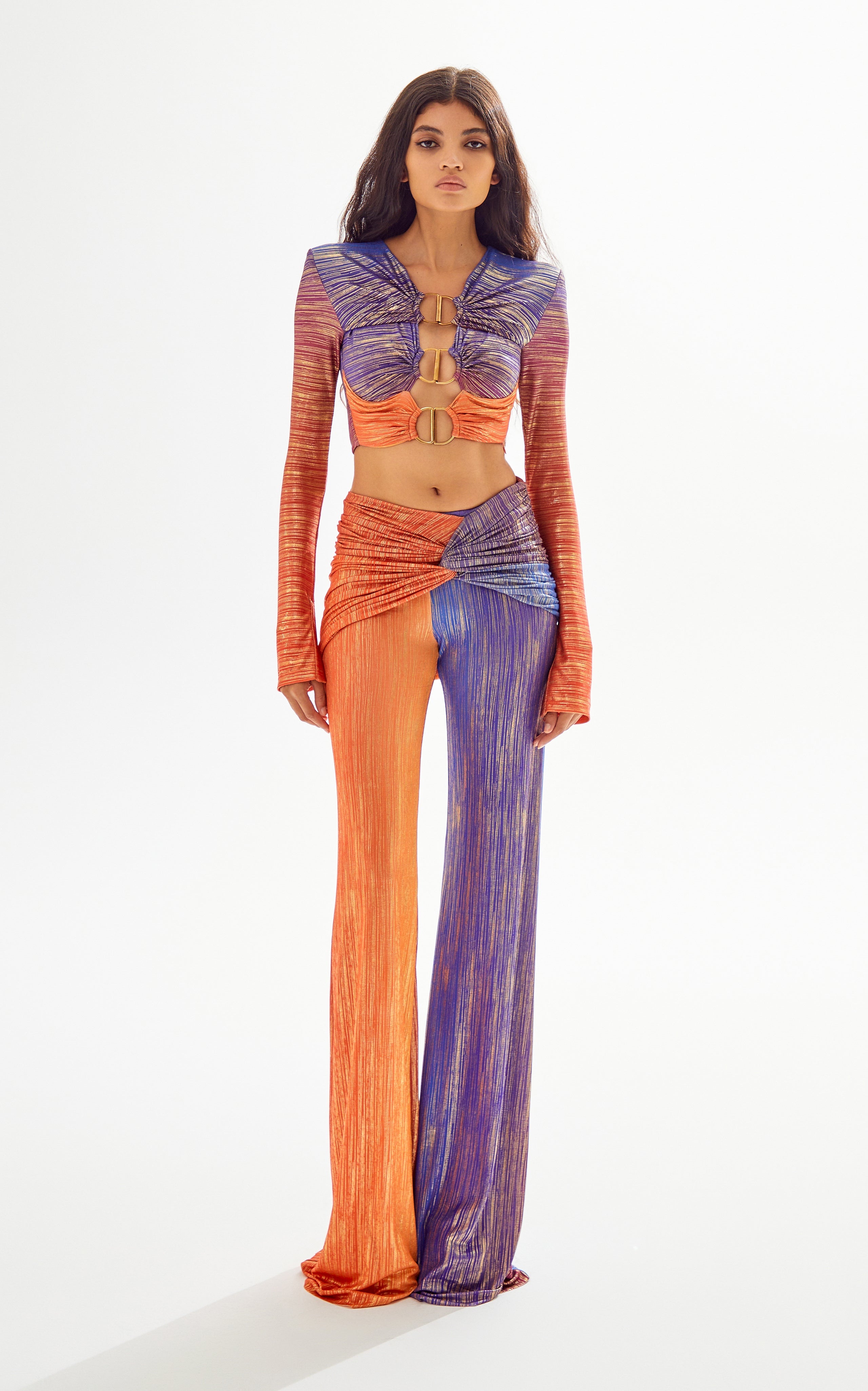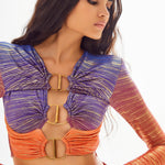 Sunset Crop Top with Cutout and Gold Accessory Details