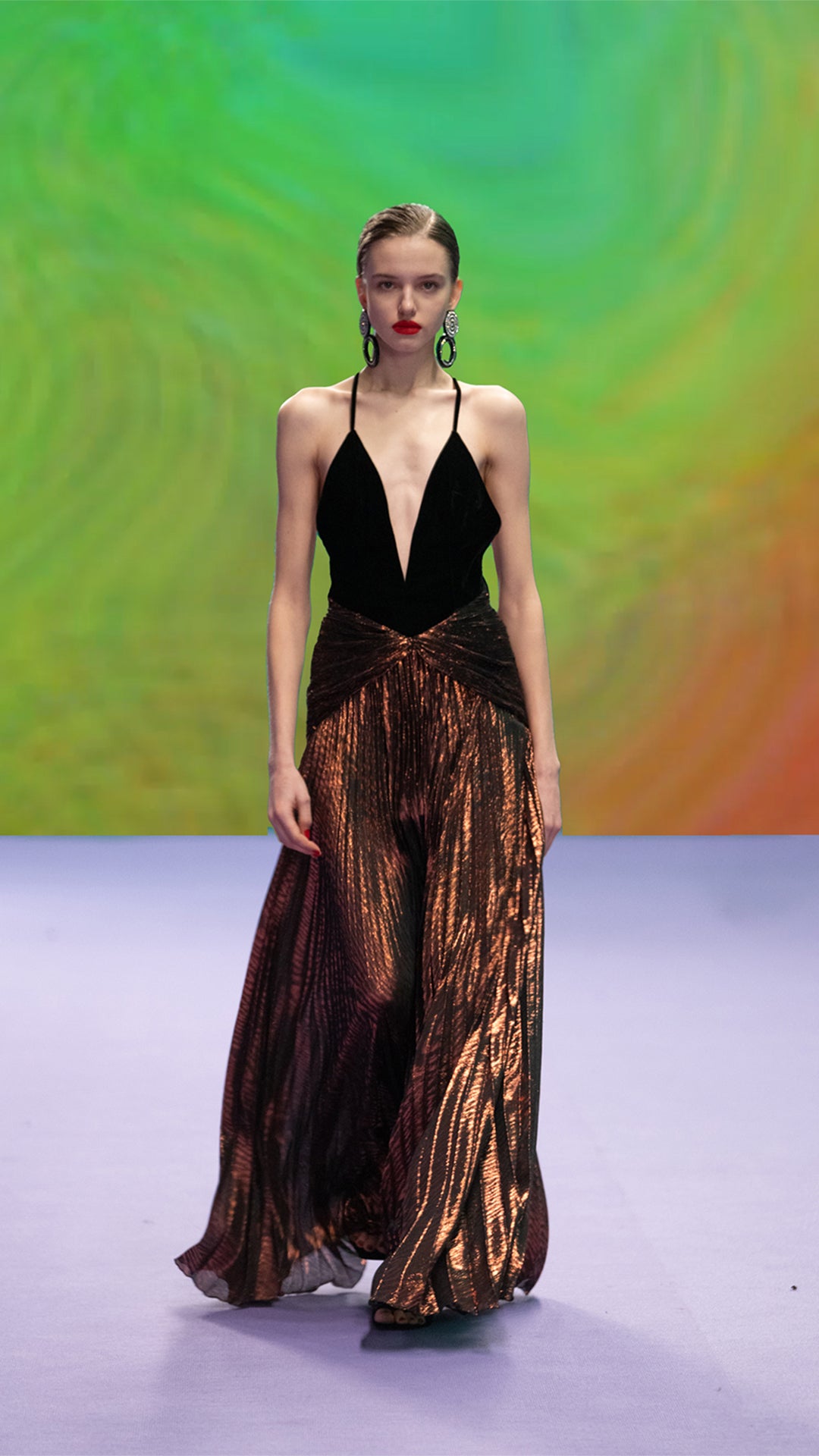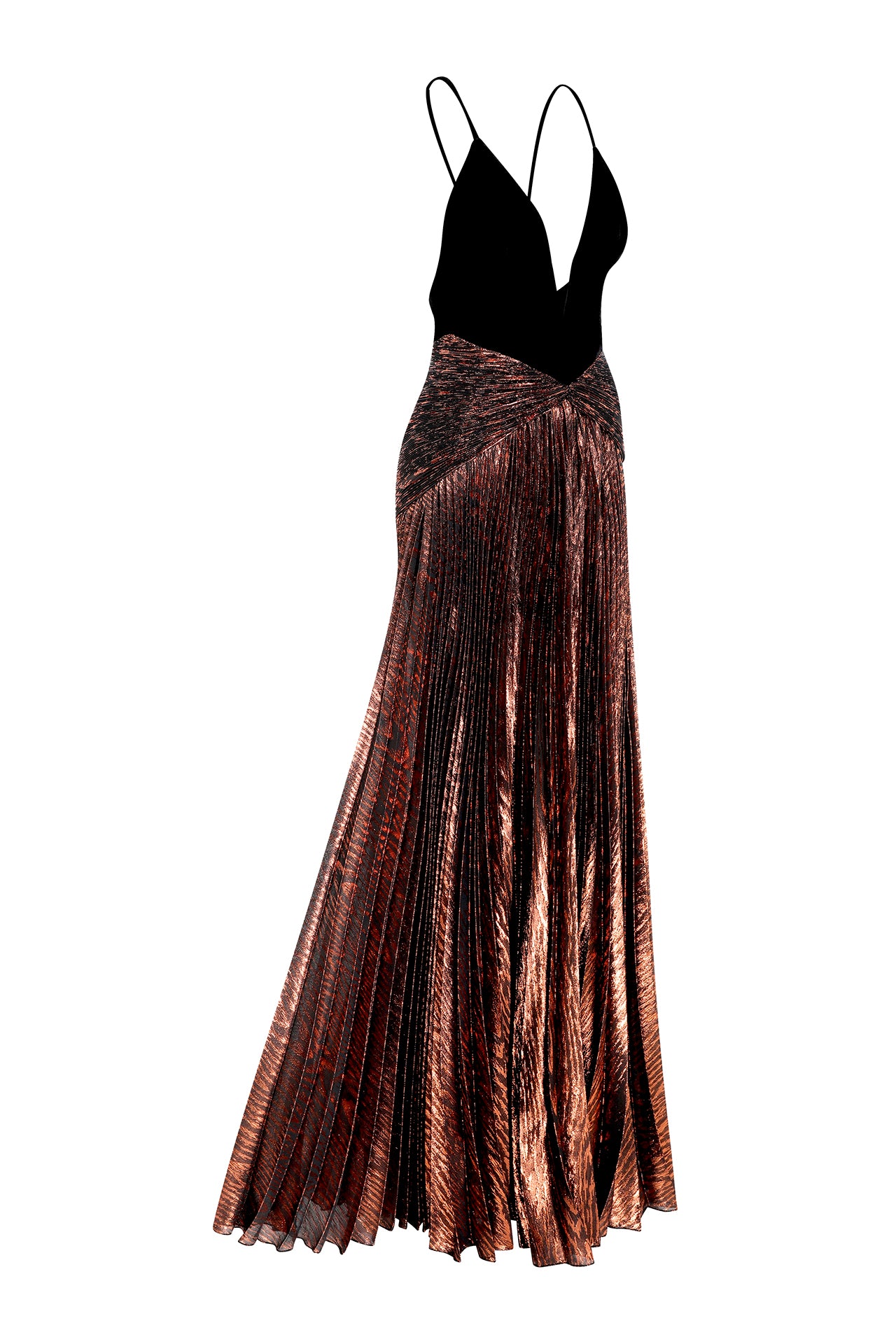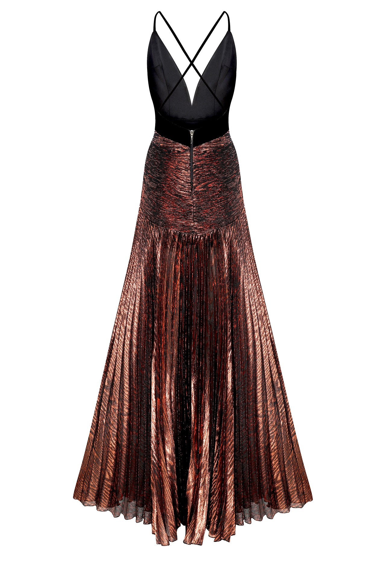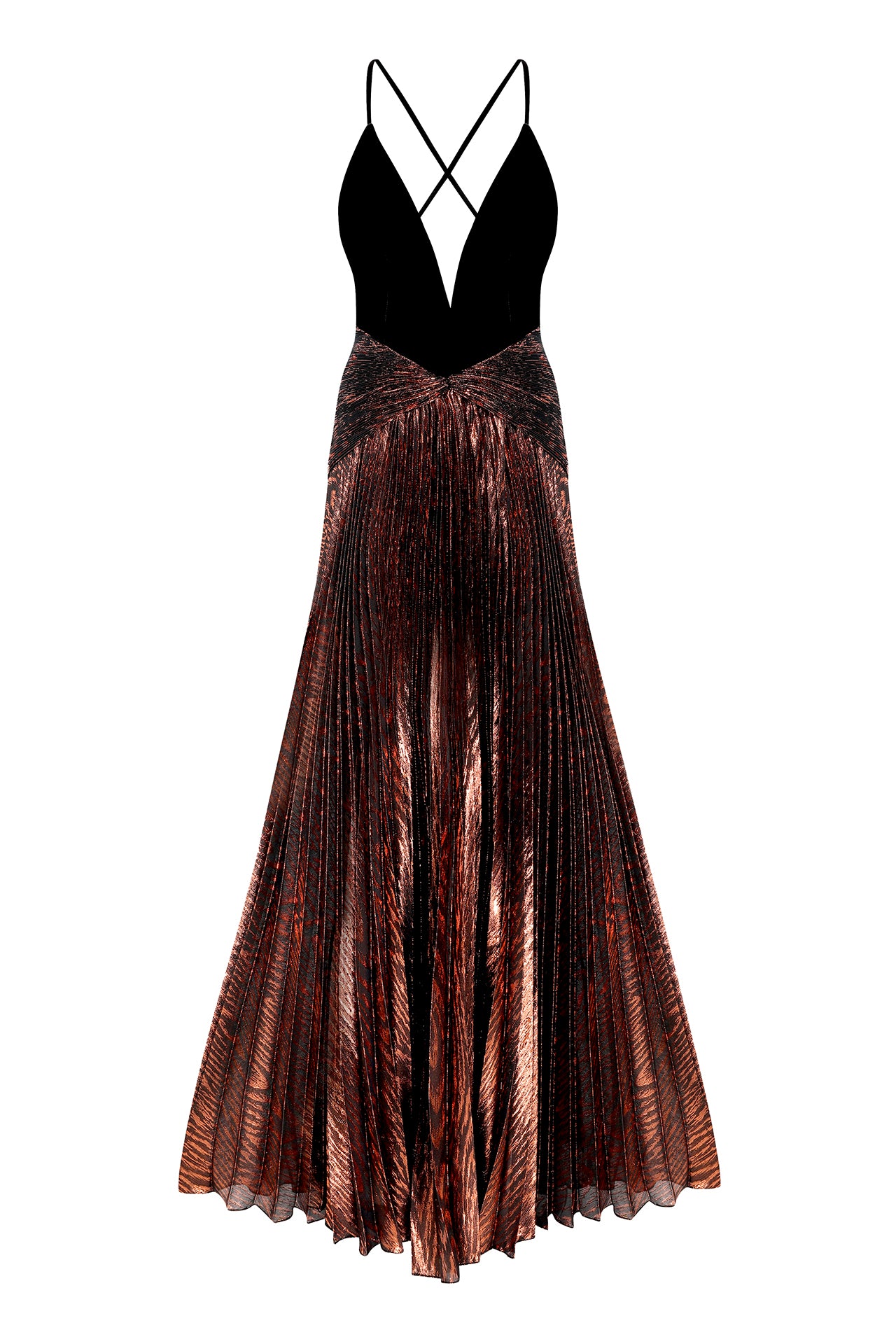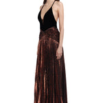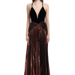 Velvet V Neck Maxi Dress With Glattered Pleated Maxi Dress